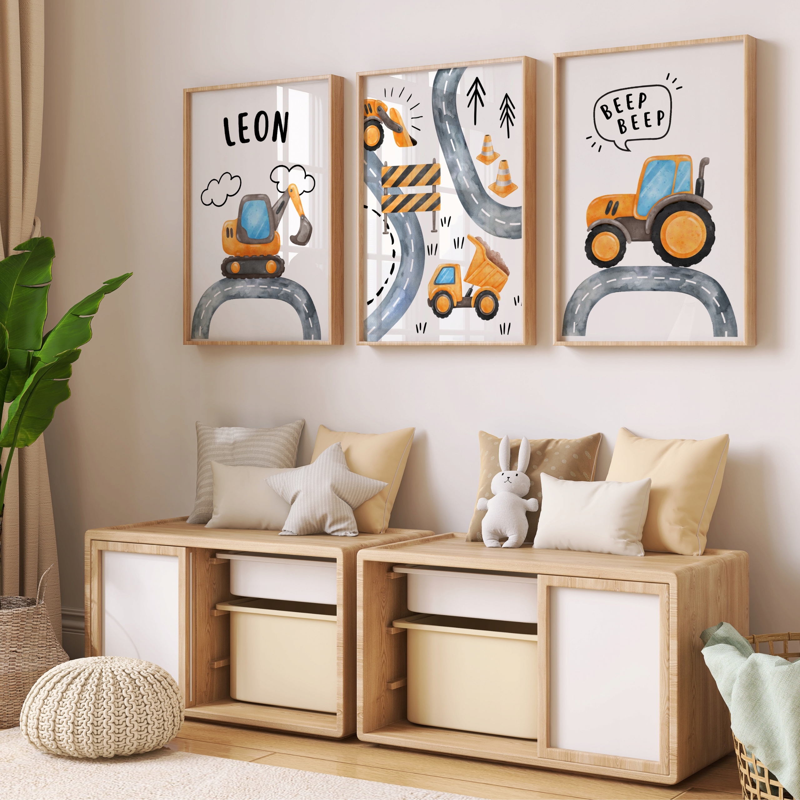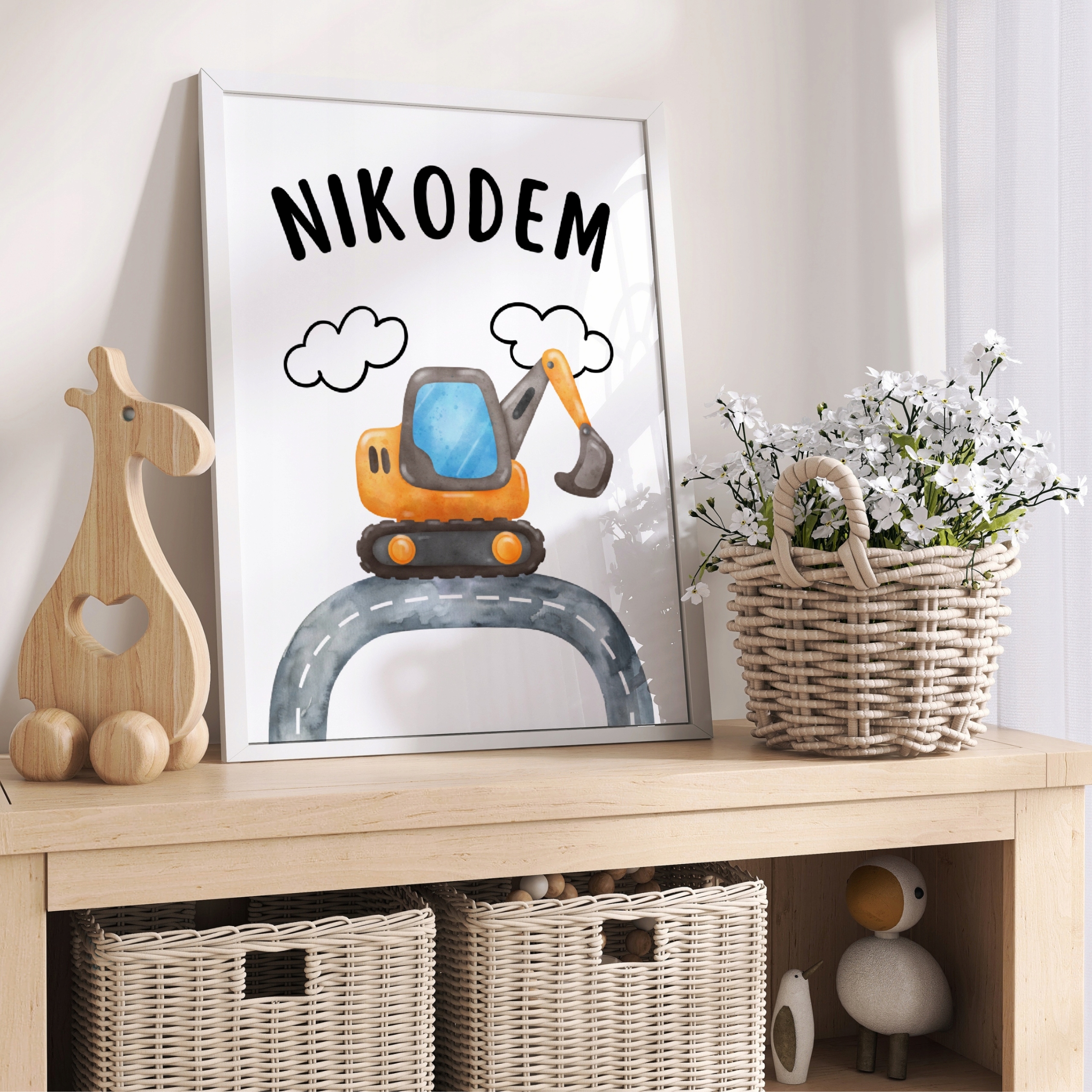 - Колір плаката: білий, жовтий, чорний, сірий, синій Крейн, трактор, персоналізований подарунок для дитини, плакат з іменем дитини