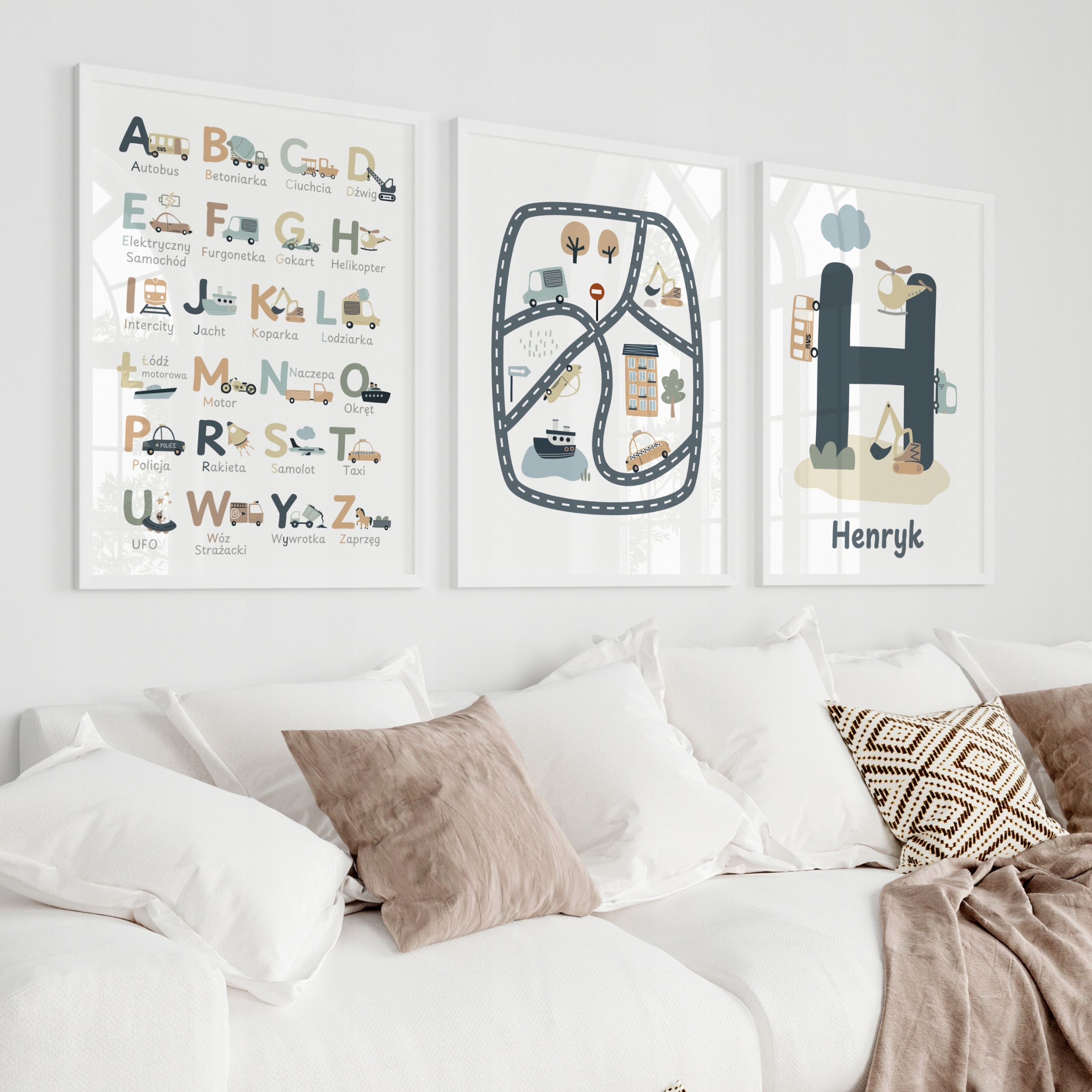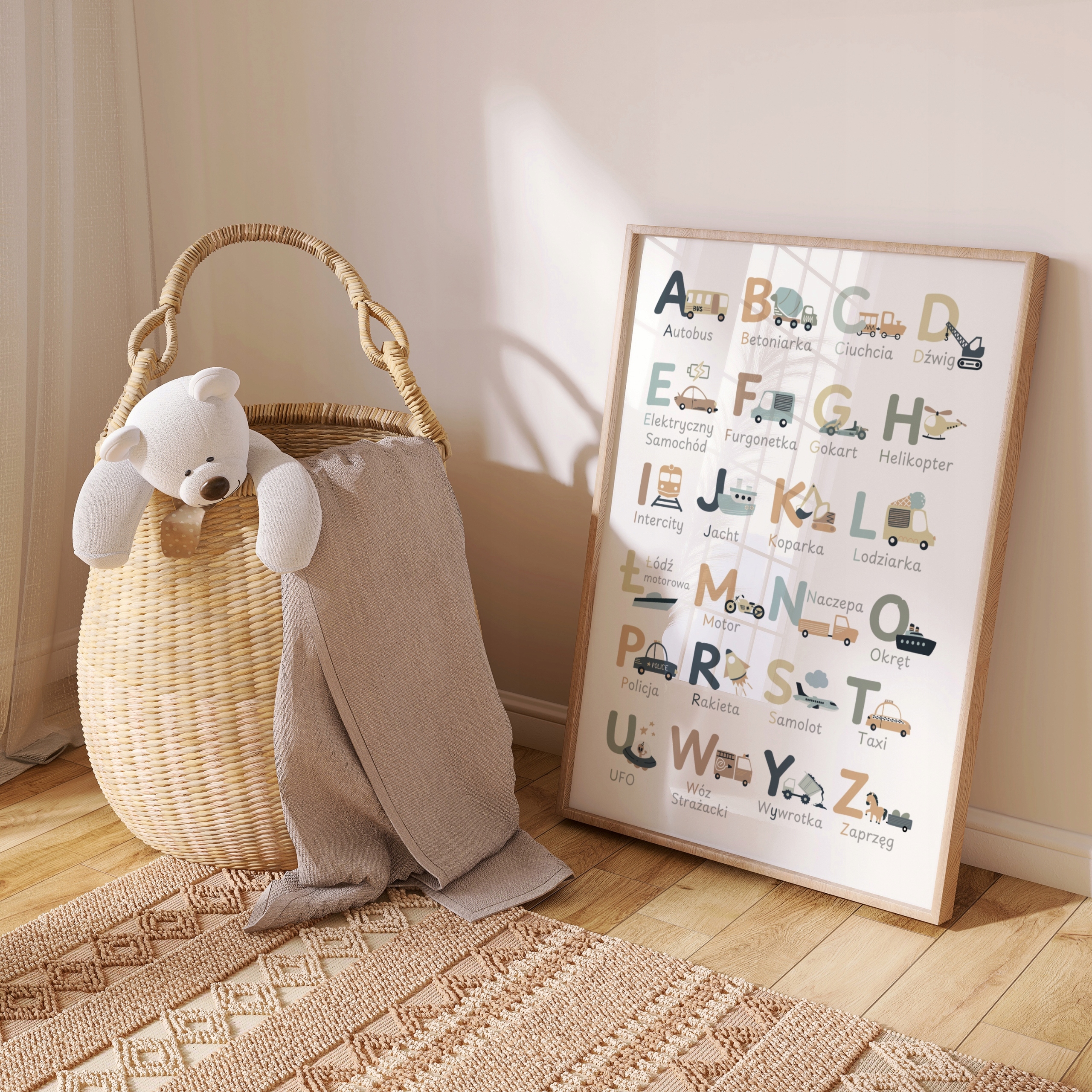 Фотографії для дитячих приміщень Освітні плакати Alphabet Cars