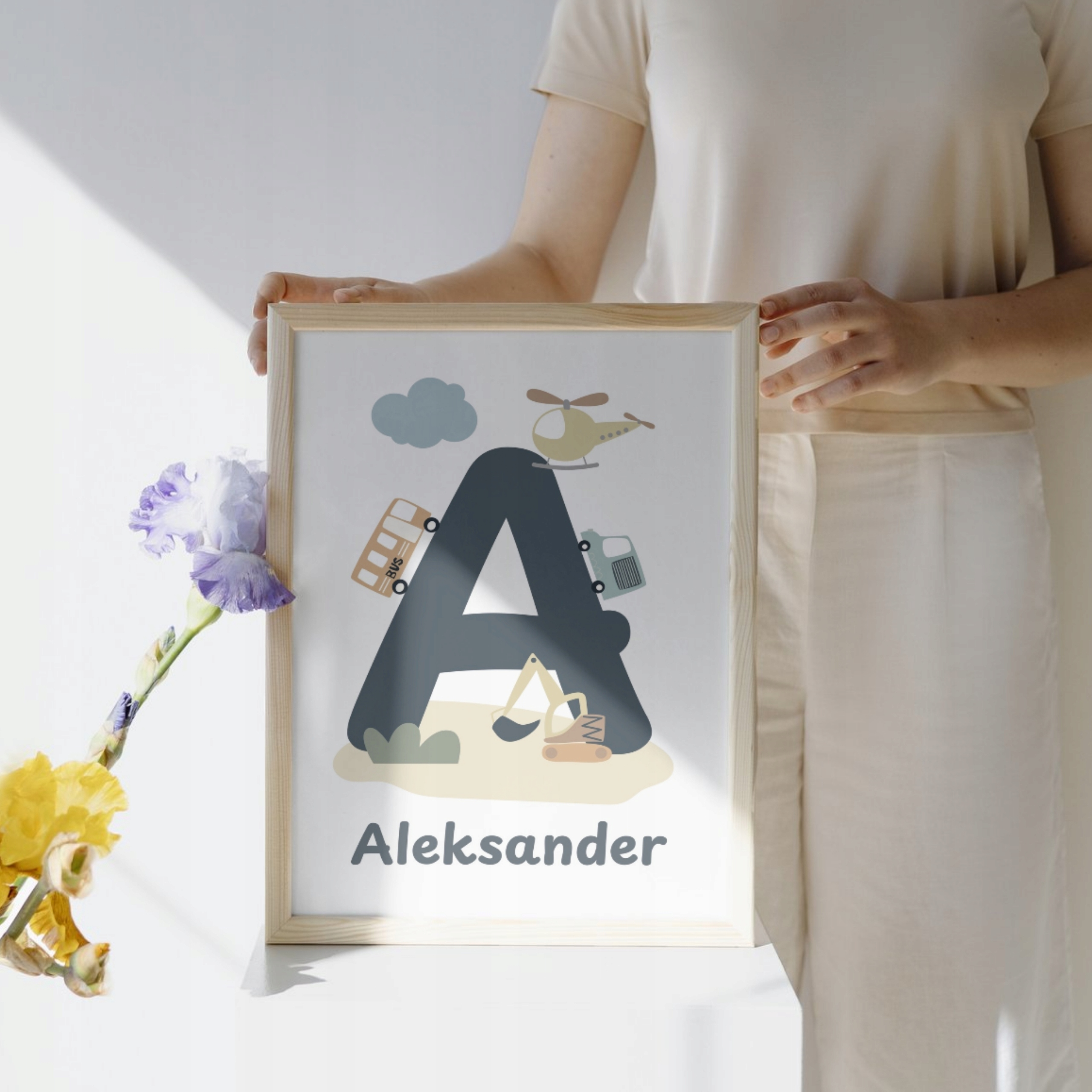 - Індивідуальний постер з ім'ям дитини - чудовий акцент, який зробить кімнату виглядати особливо. особистий, унікальний характер.
