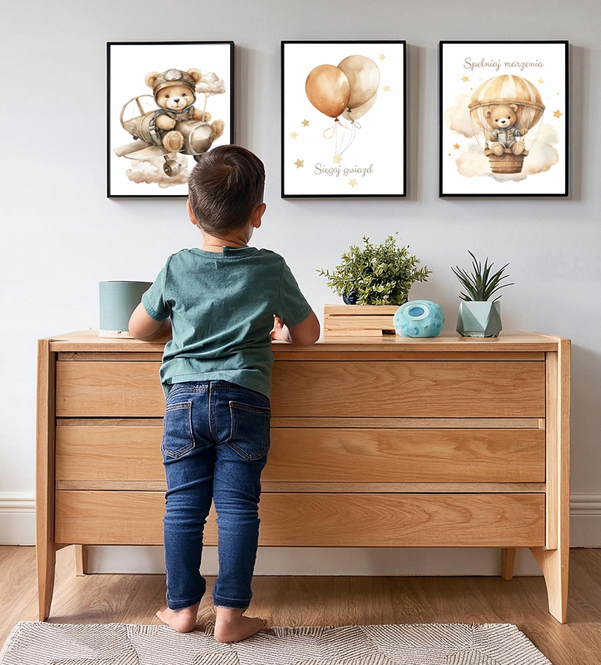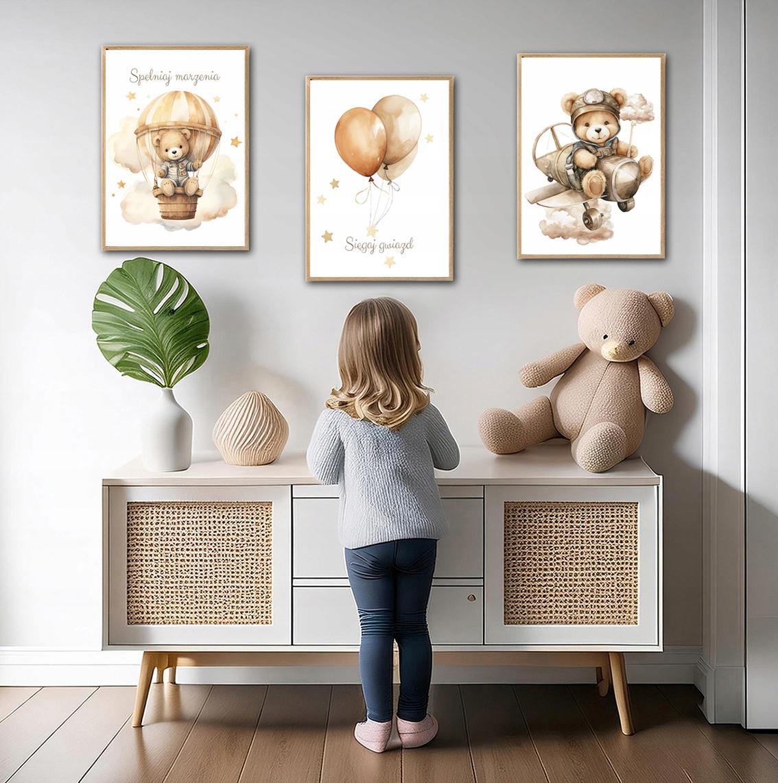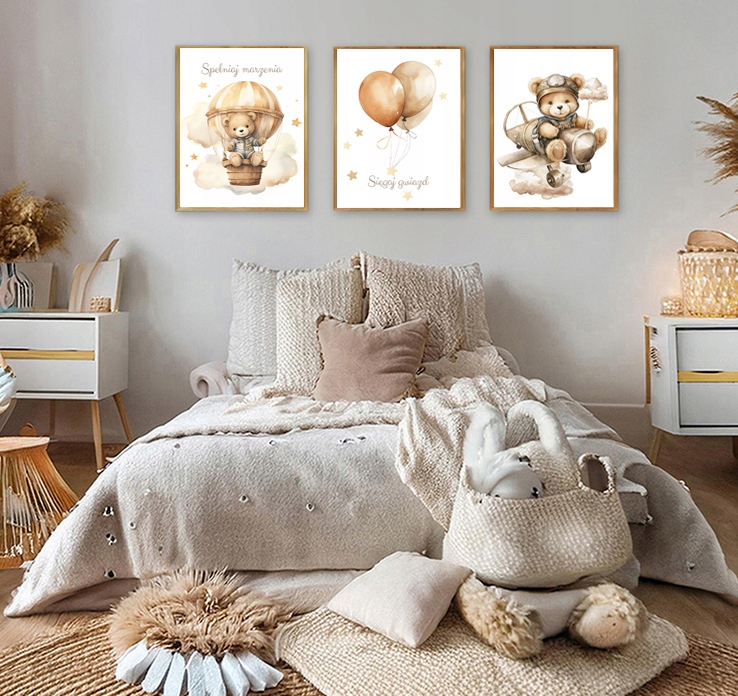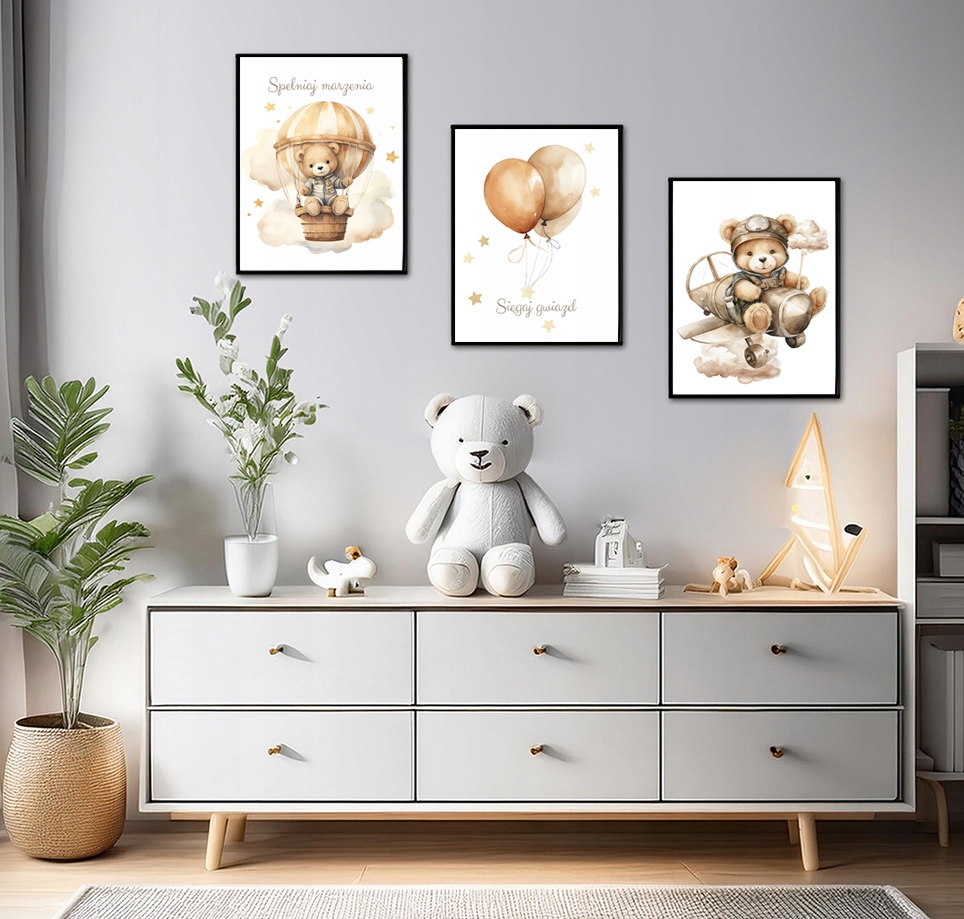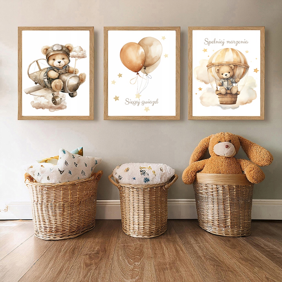 Картинки для дитячої кімнати ПЛАКАТИ 3 х 40х50 см дитячі ведмедики №807