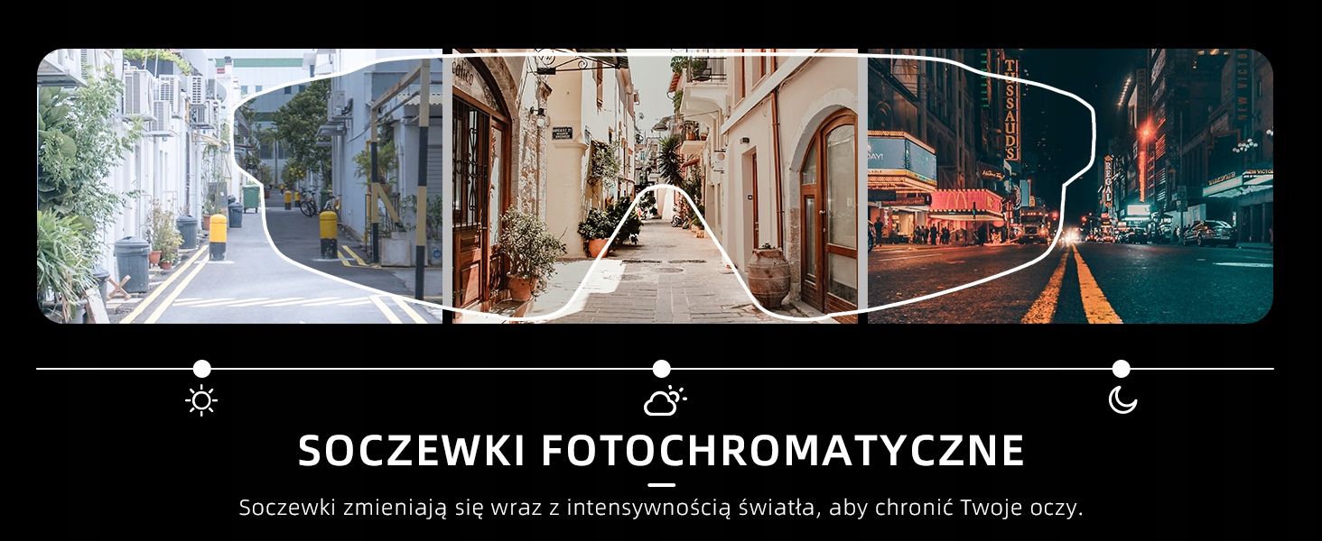 - 【УФ-ЗАХИСТ】Можна блокувати 100% шкідливих променів. Лінзи фотохроматичних окулярів прозорі в приміщенні і змінюють колір від сили ультрафіолетового випромінювання, чим сильніше ультрафіолетове випромінювання, тим темніше колір. Завдяки нашим окулярам ваші очі будуть краще захищені.