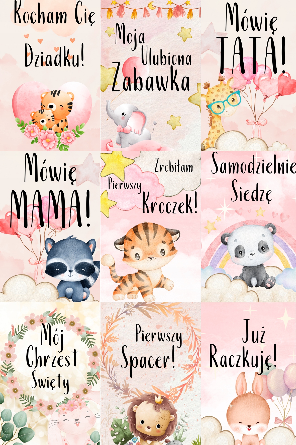 - Набір складається з 32 красиво оформлених карток, які представляють окремі місяці першого рік життя та важливі моменти.
