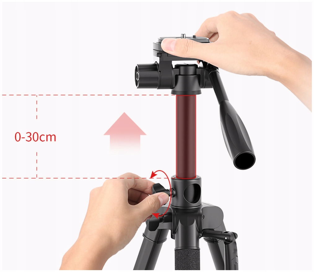 Просто витягніть середній корпус, і ви отримаєте 5-секційний монопод, висоту якого можна регулювати в діапазоні від 43,5 сантиметрів до 158 сантиметрів.