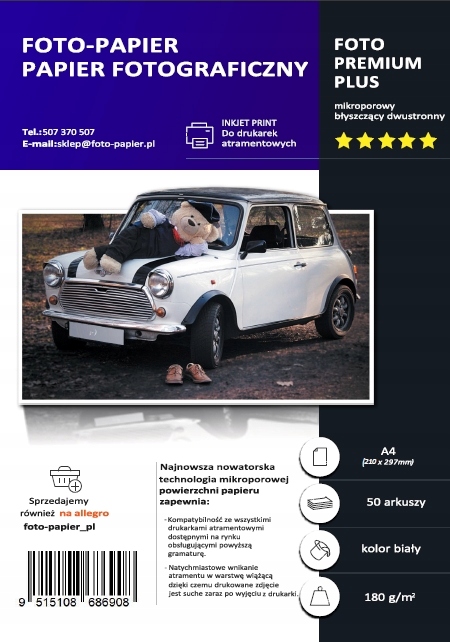 Просматривая «ФОТОБУМАГА ДВУХСТОРОННЯЯ ГЛЯНЦЕВАЯ А4 180 г/м 50шт», вы можете быть уверены, что данный товар из каталога «Фото Бумаги» будет доставлен из Польши и проверен на целостность. В цене товара, указанной на сайте, учтена доставка из Польши. Внимание!!! Товары для Евросоюза, согласно законодательству стран Евросоюза, могут отличаться упаковкой или наполнением.