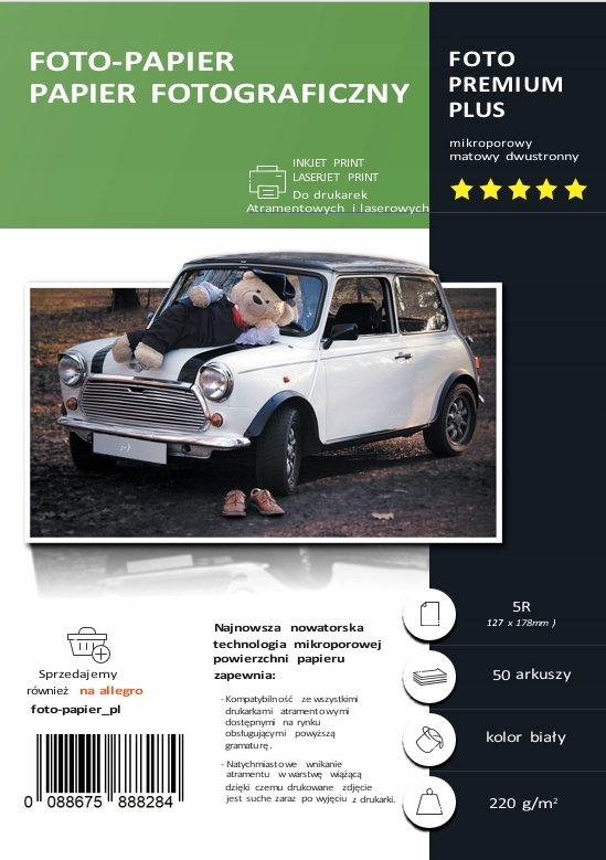 Просматривая «Фотобумага матовая 13X18 220g / m 50ark», вы можете быть уверены, что данный товар из каталога «Фото Бумаги» будет доставлен из Польши и проверен на целостность. В цене товара, указанной на сайте, учтена доставка из Польши. Внимание!!! Товары для Евросоюза, согласно законодательству стран Евросоюза, могут отличаться упаковкой или наполнением.