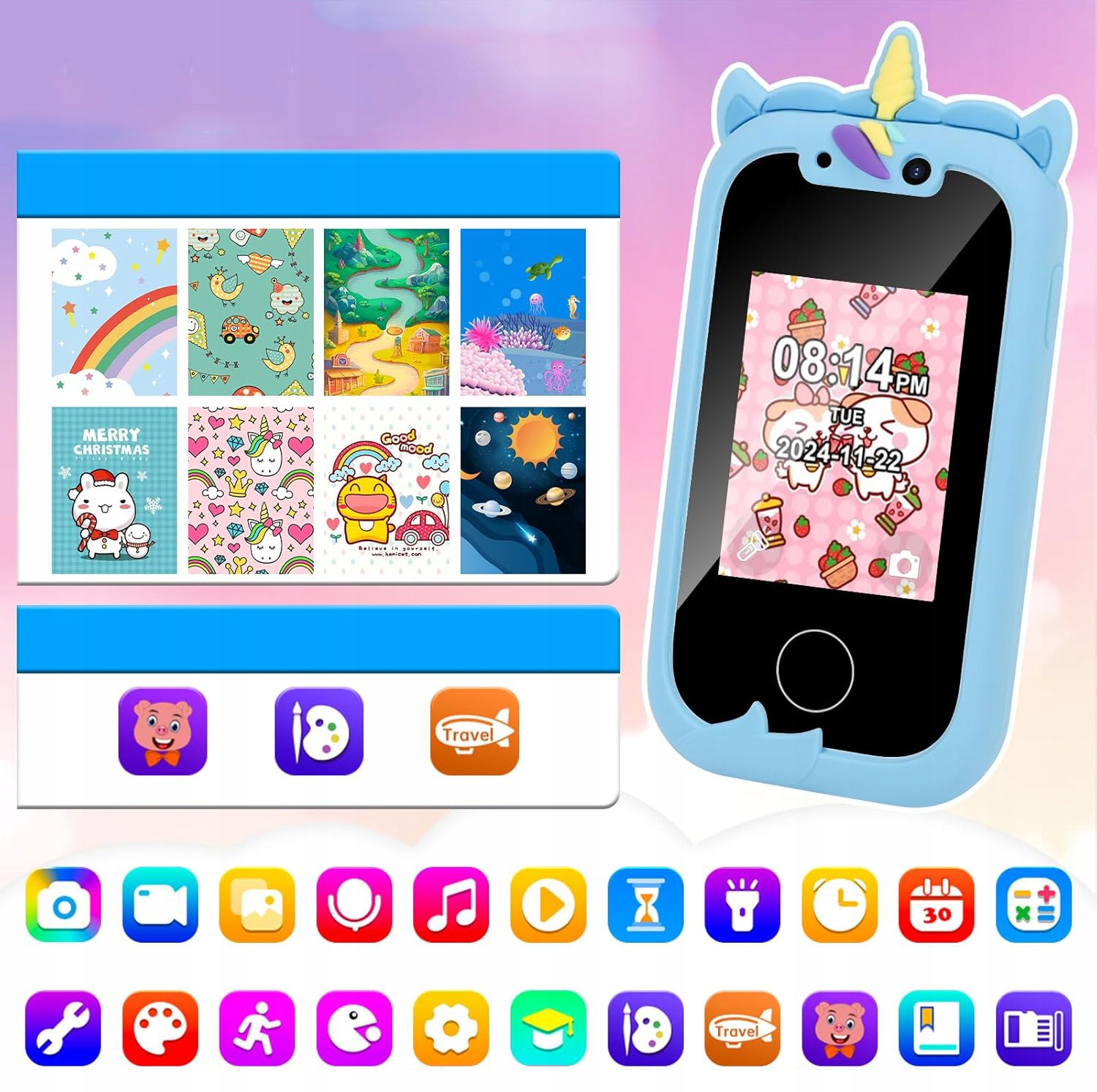 📱📱📱 Багатофункціональний смартфон для дітей - дитяча іграшка оснащена IPS сенсорним екраном з діагональ 2,4 дюйма і має кілька функцій, як справжній телефон. Діти можуть робити фотографії та відео, слухати музику та історії та грати в ігри. Іграшку також можна використовувати як ліхтарик, будильник, калькулятор і календар. Цей іграшковий телефон є нетоксичною, без бісфенолу А, без радіації та безпечною іграшкою для маленьких дітей віком від 3 до 10 років, які завжди хочуть користуватися своїм телефоном. (Підказка: аудіокнига доступна лише англійською мовою!)