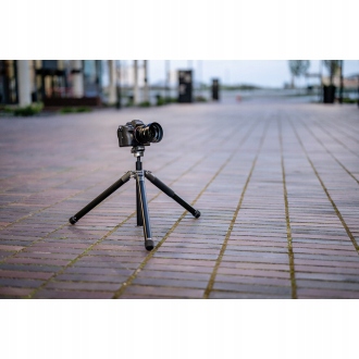 fotopro fly-1-це багатоцільовий і легкий штатив, який буде чудово працювати під час фотографічних подорожей. Унікальна форма центральної колонки дозволяє розміщувати ноги ближче один до одного, що робить пристрій ще меншим місцями після складання. Штатив пропонує висоту робочу діапазон від 28,3 до 150,5 см і вагою всього 1 кг. Завдяки системі обертового затискача ви поширите її за кілька секунд. У нижній частині центрального стовпця ви знайдете спеціальний гачок, де ви можете призупинити навантаження. Після того, як він відкручений, ви знайдете спеціальний кластер для складеної ручки, що дозволяє встановити смартфон безпосередньо на головці кулі. Штатив також був оснащений 2 встановленими нитками 1/4 ", носами проти стовпів, рівнями, системою управління панорамою та відділом катів.