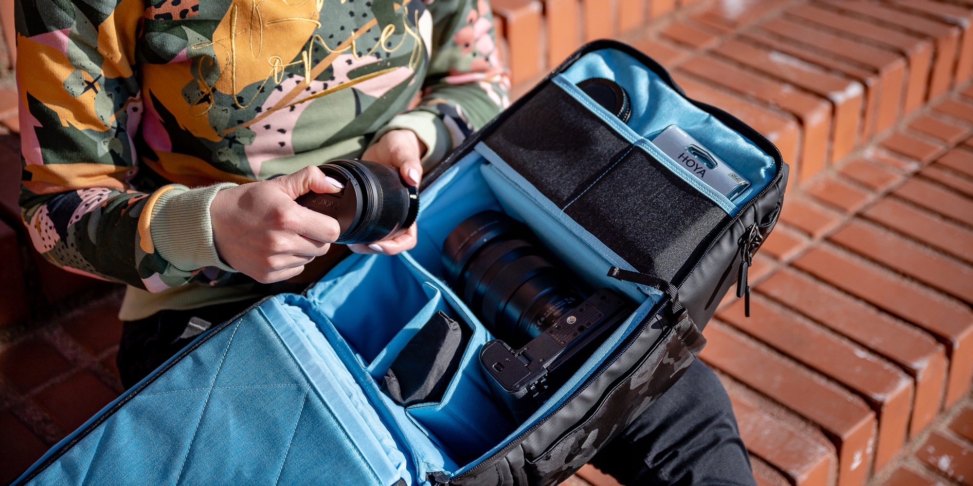 - у нього легко поміститься фотоапарат з об'єктивом 24-70 мм , дрон, ноутбук (13, 3"), планшет та додаткові фотоаксесуари