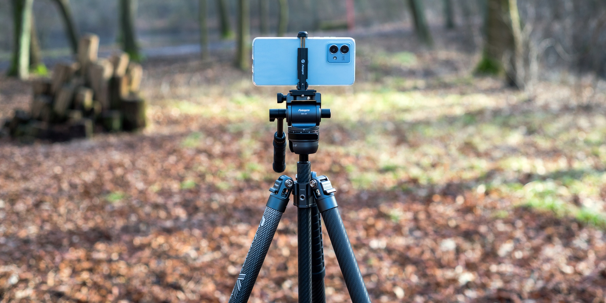 У випадку більшості кіно- та фотоштативів робочі зі смартфоном потрібна спеціальна ручка. Вибираючи модель Fotopro X-Airfly Max Video, ви завжди матимете її під рукою! Оснащений різьбою 1/4 дюйма, кріплення приховано всередині центральної колони. Тримач смартфона сумісний зі стандартом Arca-Swiss, тому ви можете встановити його на голову замість монтажної пластини.