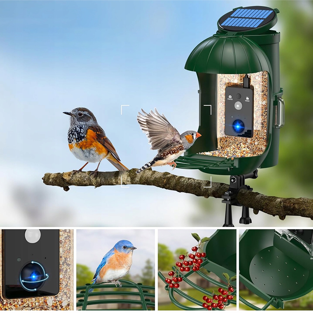 - ✔ Inteligenta Camera для подачі птахів має 3 режими запису: Фотографії / Відео/фотографії+відео .