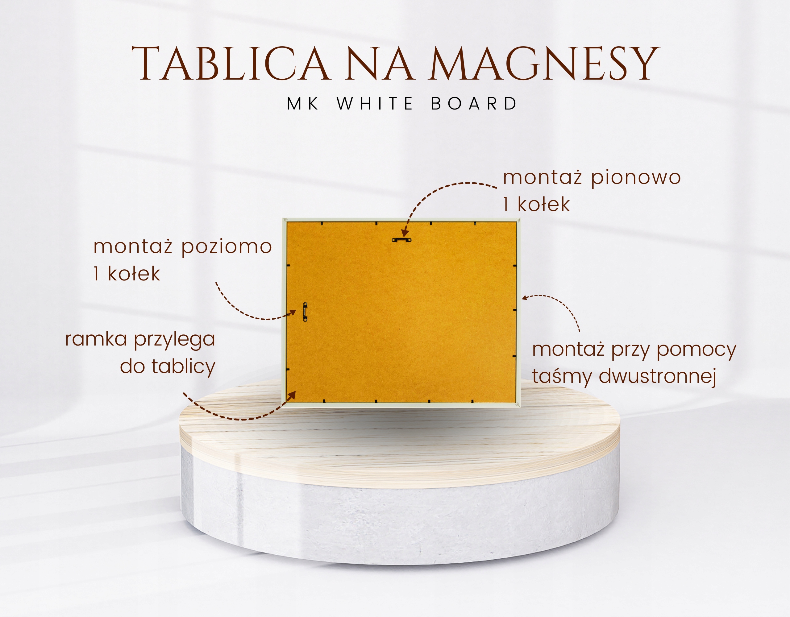 Легкий(1 кг) конструкція (дерево, МДФ, метал) просто монтується (двосторонній скотч або одна дюбель) стабільна та міцна (каркас не знімається з дошки) довго виконує свої функції.