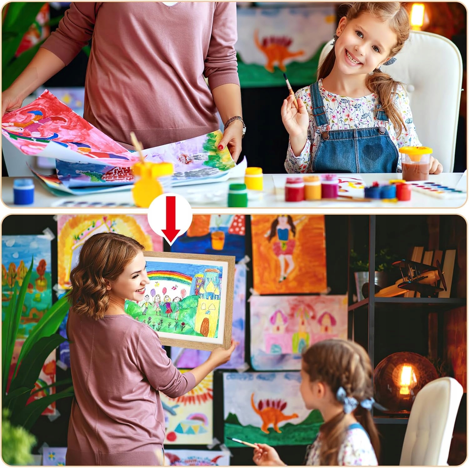 - 【Спеціальний дизайн кріплення】 Штучна дитяча рамка оснащена чорною гумовою стрічкою, за допомогою якої картину можна подвійно закріпити. Рамка оснащена двосторонніми наклейками на тильній стороні, щоб запобігти злегка розгойдування при кріпленні на стіні. Наша фоторамка формату A3 ідеально підходить для дорогоцінних творів мистецтва вашої дитини. Її можна відкривати та закривати, як книжку, щоб ви могли демонструвати, змінювати чи зберігати твори мистецтва.