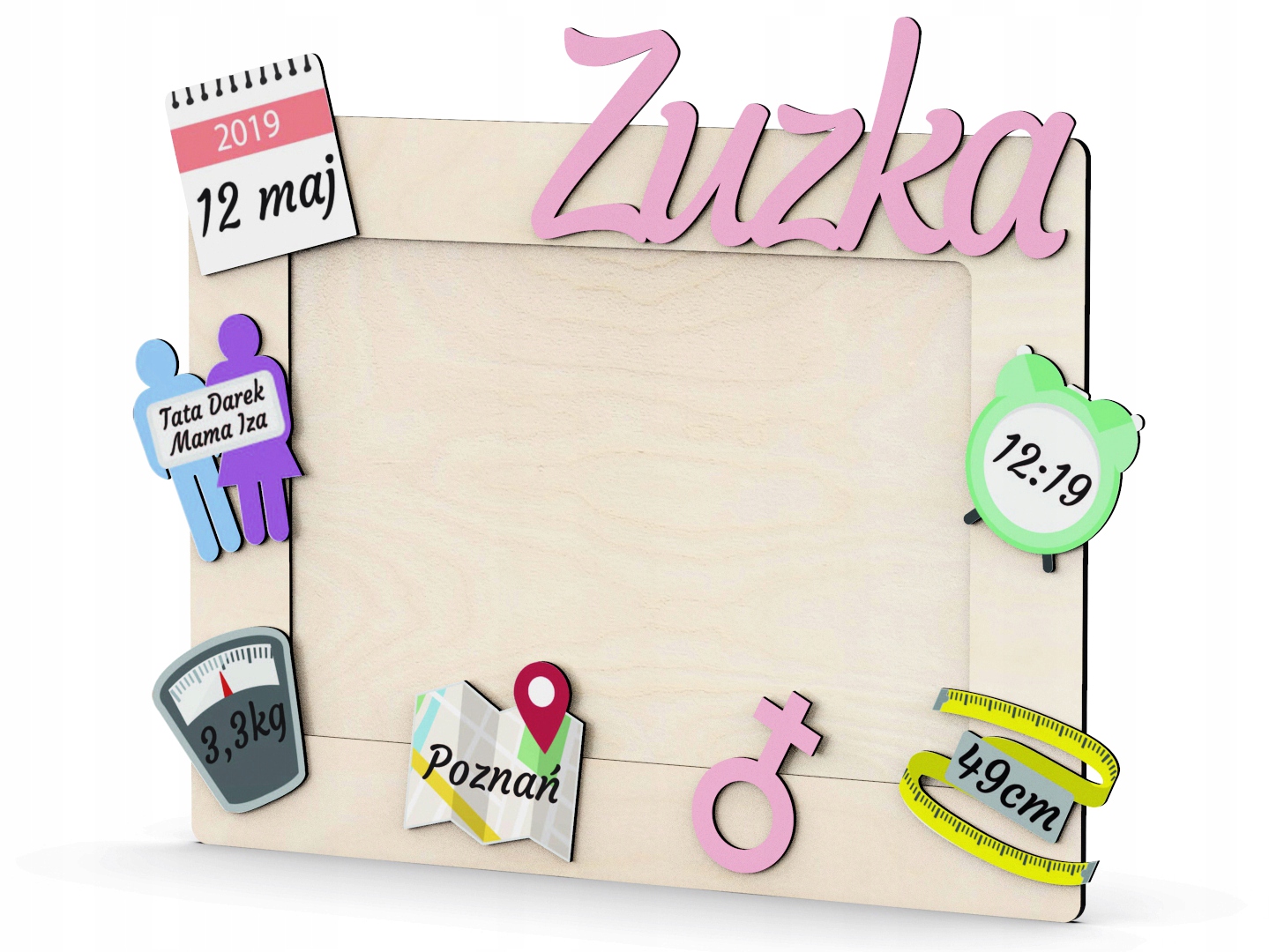 Наша стильна фоторамка ідеально підійде для кімнати кожної дитини. Це стане чудовим подарунком на хрестини, день народження чи інше свято. Завдяки використаному нами рішенню рамку можна поставити на полицю, шафу або повісити на стіну. Наш продукт на 100% виготовлений з дерева. Товщина рами близько 1 см, а зовнішні розміри 20 см х 15 см. Етикетка призначена для фотографій розміром 15 см х 10 см.