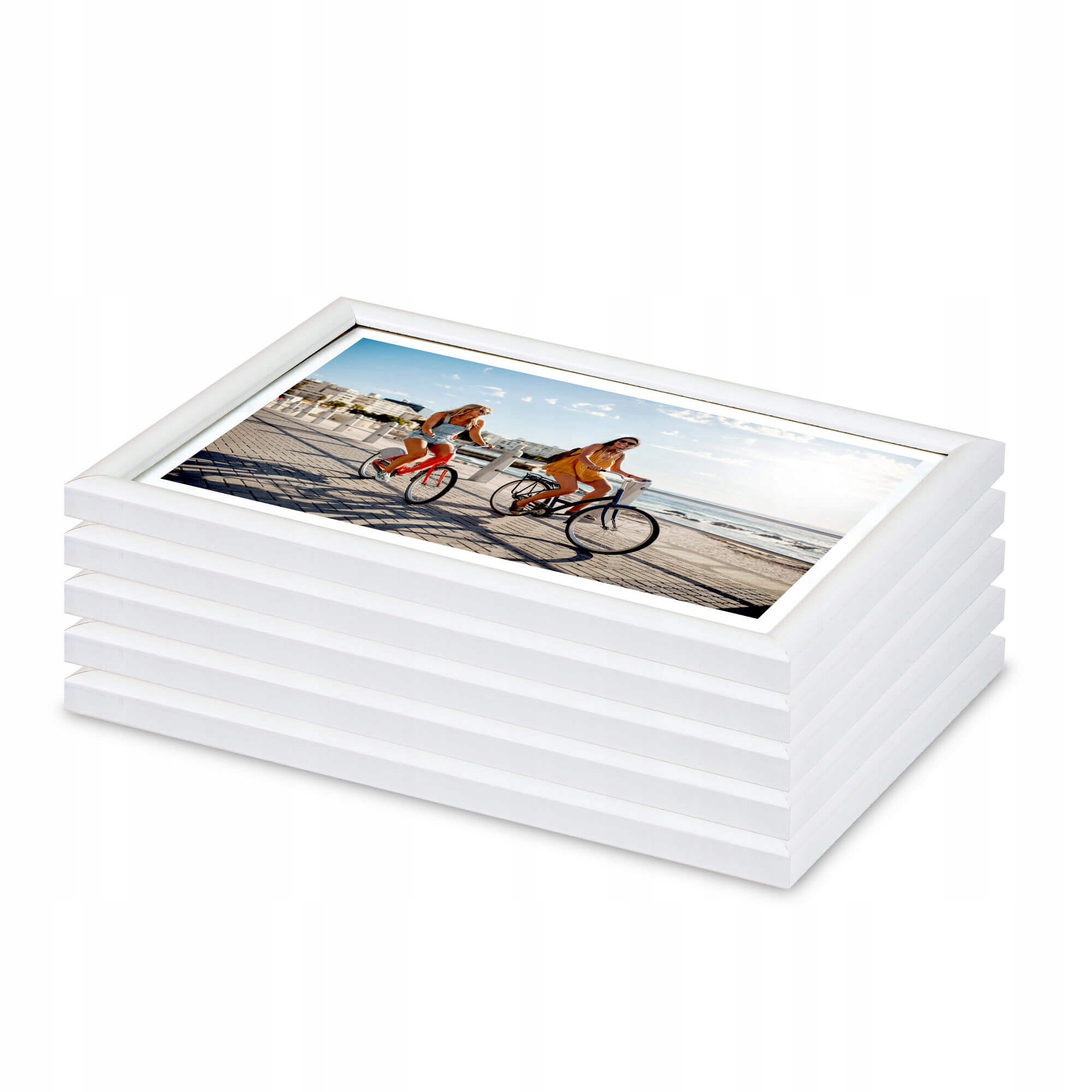 Фоторамки білі з профілем 12х13 мм, 100% дерево. Упаковка в дерев'яну рамку - відмінне рішення для економного обрамлення фотографій, малюнків і гравюр. Рами упаковані в набори по 5 штук. Укомплектовані мінеральним склом. Спинки виготовлені з твердої плити HDF. Фоторамки розміром до 18х24 см додатково мають ніжку/ніжку, що дозволяє розмістити фотографію в рамці на столі чи полиці. Пакет дерев'яної рами DIPLO доступний у розмірах від 10х15 см до 30х40 см.