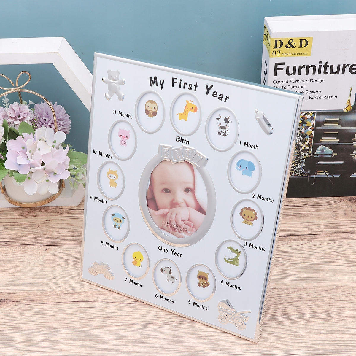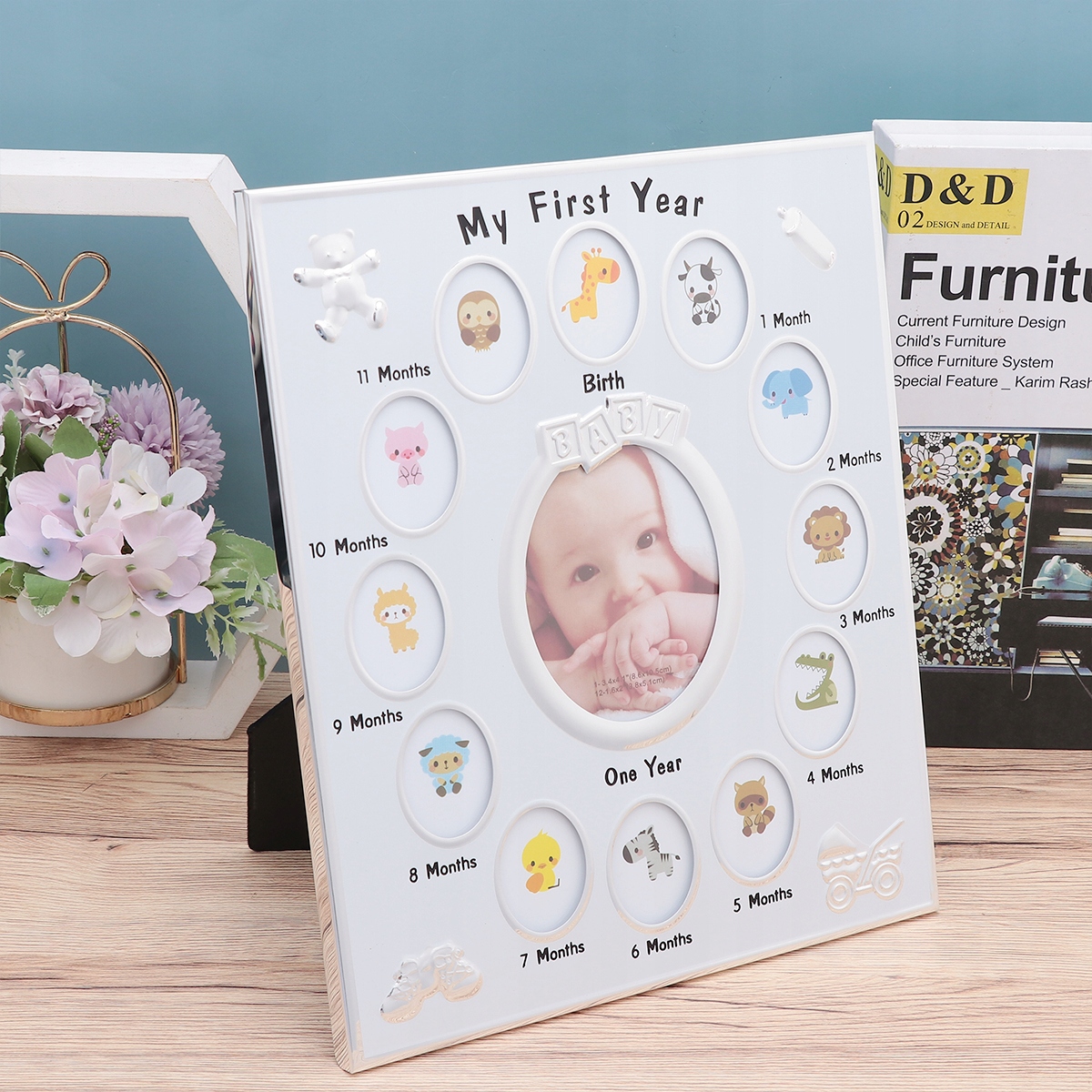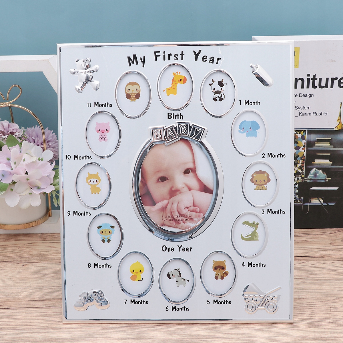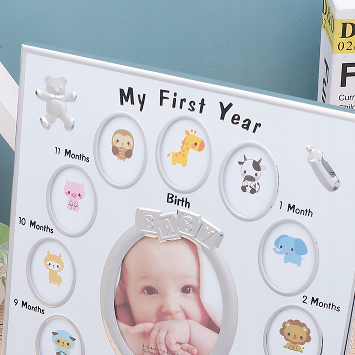 ✅ Фоторамка вміщує 12 фотографій, по одній для кожного місяця першого року.
