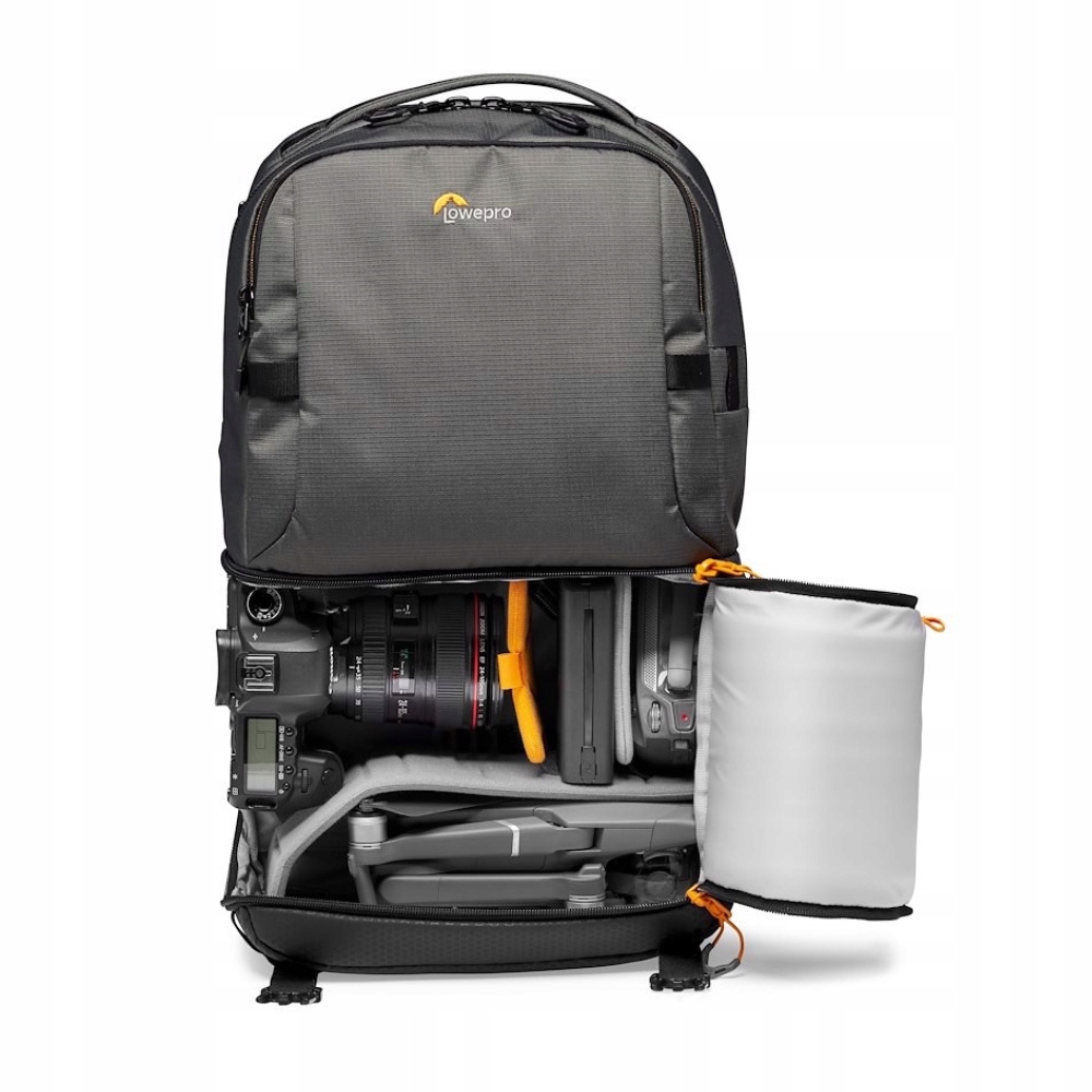 Дорожній рюкзак, призначений для професійної бездзеркальної камери або професійної дзеркальної фотокамери з портретним байонетом, 2-3 додатковими об’єктивами або дрона, 15-дюймового ноутбука та особисте обладнання.