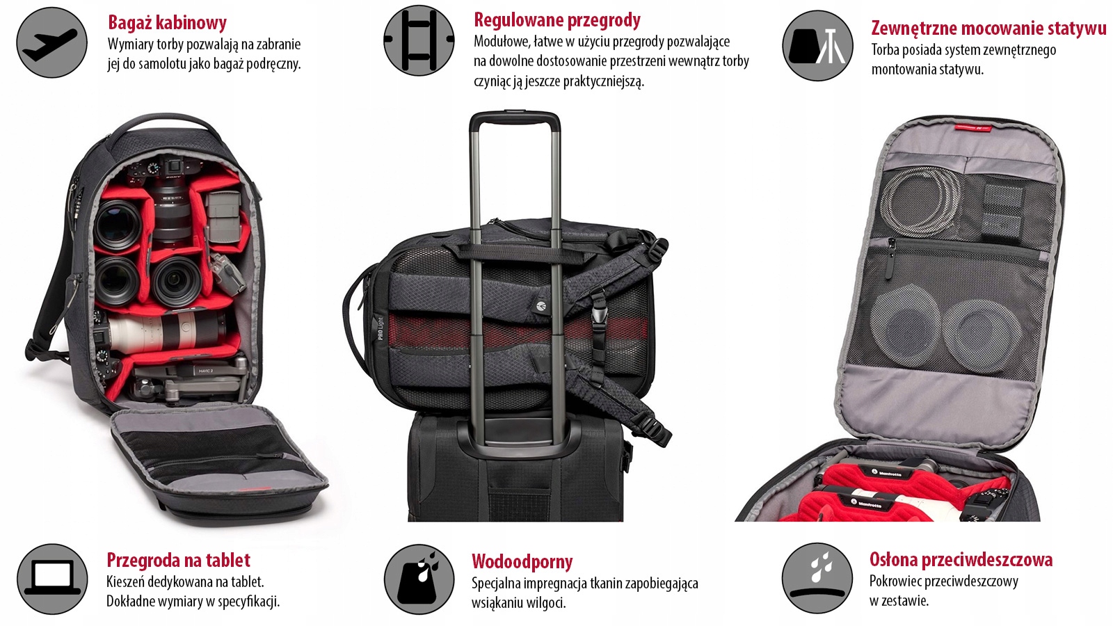 4 вкладення штативаСумка має зовнішню систему монтажу штатива. Модульний, простий у використанні розділ, що дозволяє будь -яку адаптацію простору всередині сумки, що робить його ще більш практичним. транспорт. Точні розміри в специфікації. , Спеціальний ремінь дозволяє прикріпити сумку на ручці валізи з колесами. Сонячне світло, захист обладнання від перегріву.
