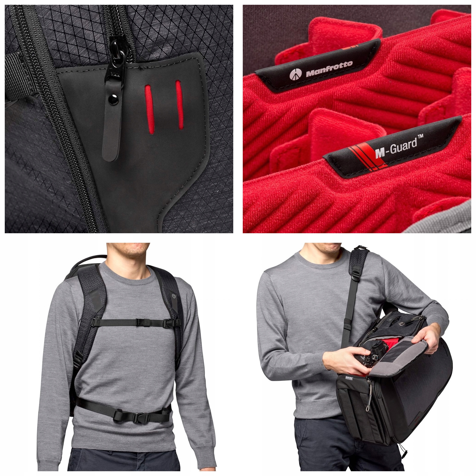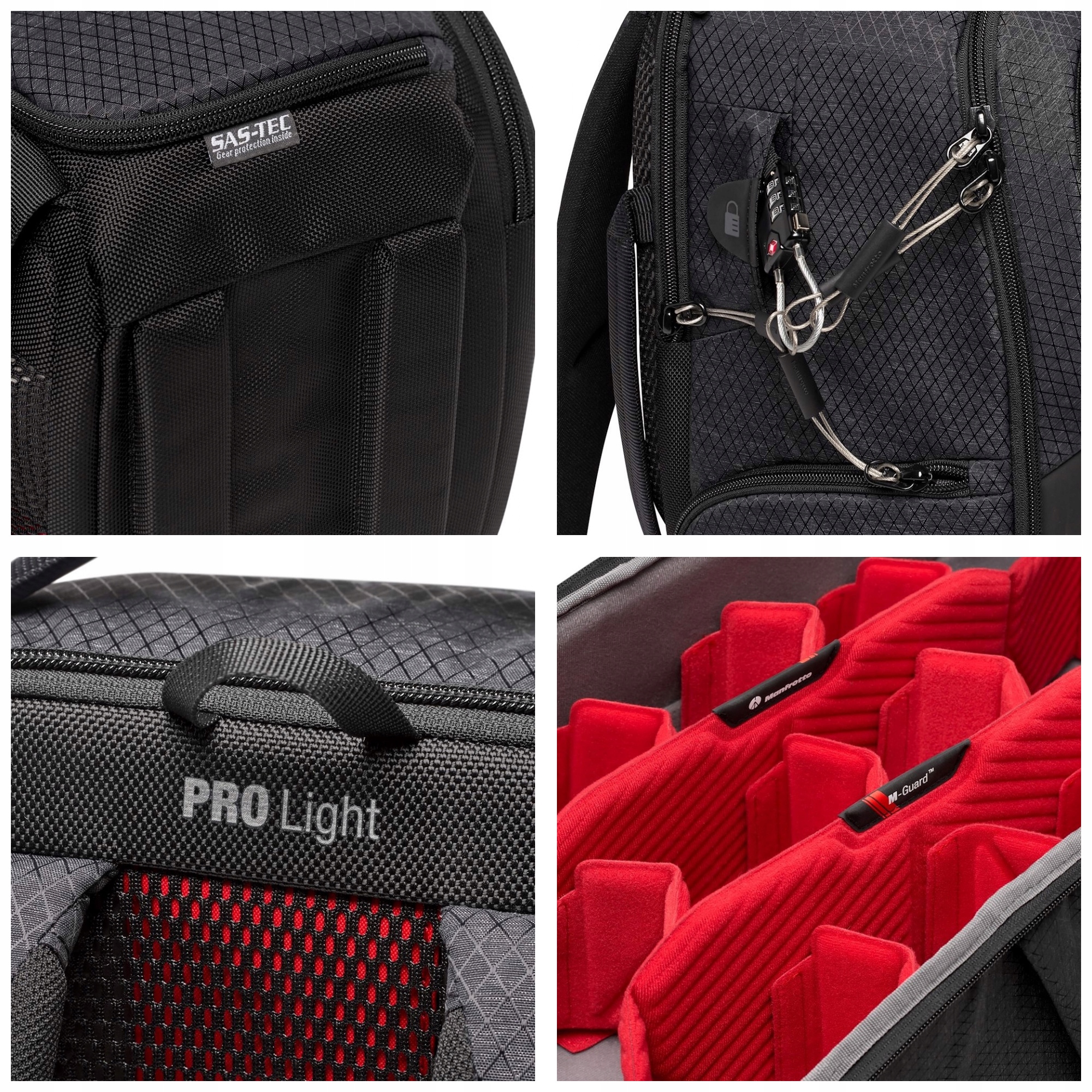 Рюкзаки з серії Manfrotto Pro - це відповідь на потреби професіоналів, які очікують довговічності, високого рівня безпеки та функціональності. Система захисту M-Guard ™, спеціально розроблена та лабораторна перевірка, щоб гарантувати найвищий рівень захисту та стійкості до шоку, особливо в районах сумки, де захист є найважливішим. Перегородки M-Guard ™ виготовлені з пінопласту EVA високої щільності, що забезпечує виняткову подушку, зберігаючи дуже стрункий профіль. Крім того, SAS-TEC, в'язка піна з пам’яттю та стійкістю до удару, додає структурну арматуру в основі рюкзака, забезпечуючи додаткові властивості подушки. Для додаткового захисту для захисту повзунків можна використовувати замок TSA та закриття основного відсіку. Менший бічний клапоть забезпечує швидкий доступ до найбільш часто використовуваного обладнання. Ви можете покласти повномасштабну камеру без зчеплення, з прикріпленим об'єктивом 70-200 мм f/2,8. З верхівки рюкзака ви знайдете інструктаж у аеропорту, ноутбук до 15 ", а розділ з багатьма кишенями для невеликих аксесуарів розташований спереду, щоб забезпечити швидкий доступ до необхідних аксесуарів.
