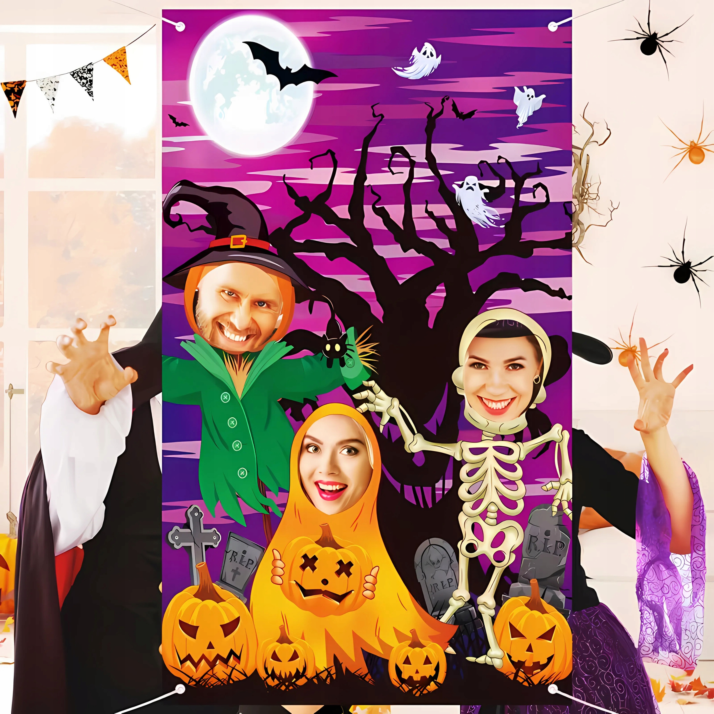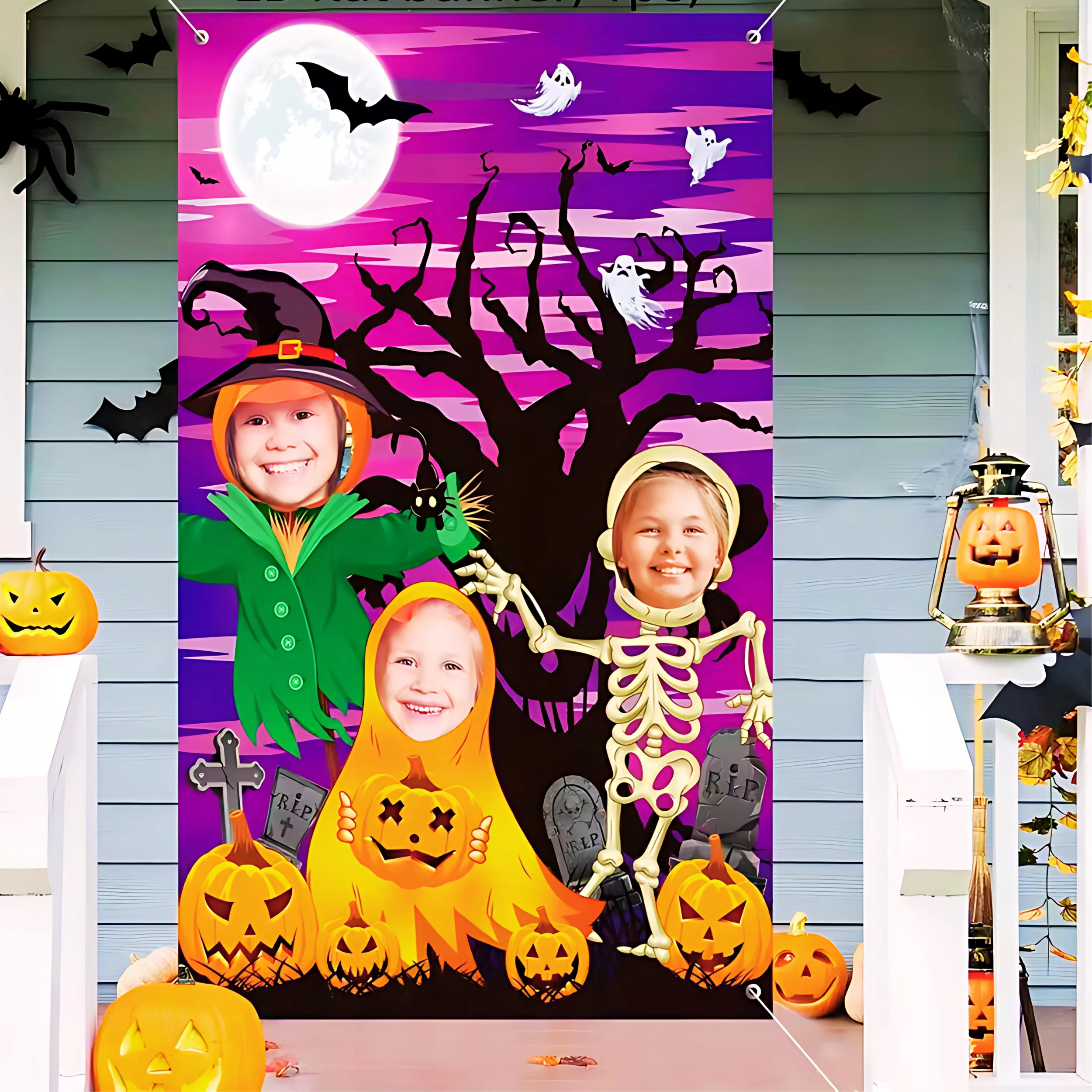 Подаруйте своїм дітям радість від інтерактивного фону з вирізами, який заохочує робити фотографії разом. Це прикраси для вечірок на Хелловін, які чарівним чином об’єднують покоління.