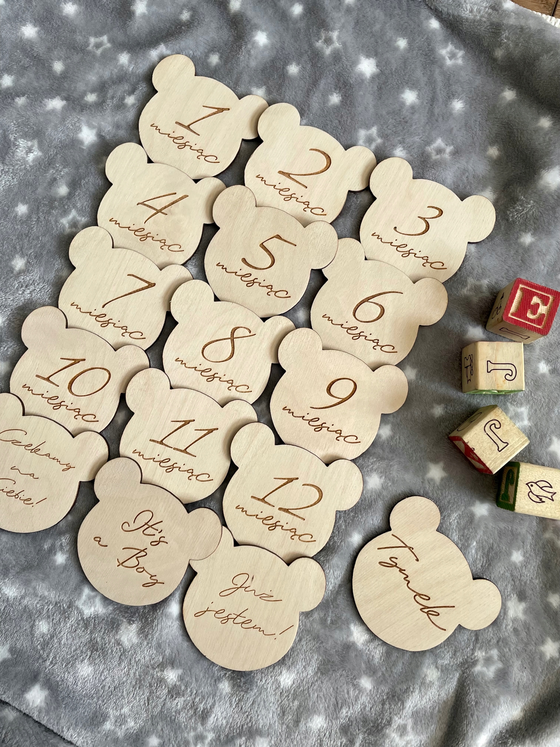 Ведмедики Дерев'яні дошки для фотографій малюка - ПЕРШИЙ РІК ЖИТТЯ - 1 шт.