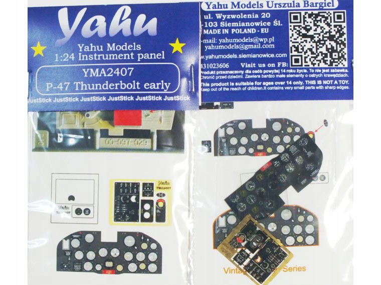 Фототравлена, кольорова панель приладів, готова (JustStick) до встановлення в модель. Набір елементів із фототравленням для валоризації моделі, призначений для використання в моделях літака P-47 Thunderbolt Early в масштабі 1:24 із пропозиції серії Kinetic і Vintage Fighter.