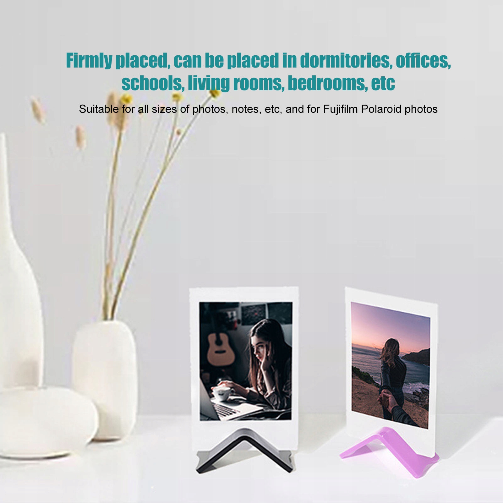 1. Висока сумісність: цей фототримач підходить для будь-яких розмірів фотографій, нотаток тощо та фотографій Fujifilm. Фототримач можна стабільно розмістити на столі.