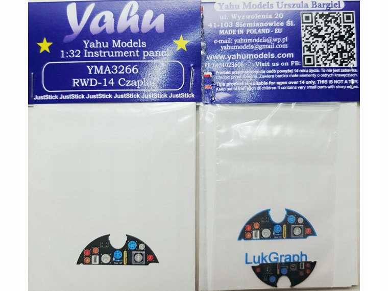 Фототравлена, кольорова панель приладів, готова (JustStick) до встановлення в модель. Набір елементів фототравлення для валоризації моделі, призначений для використання в моделях літака RWD-14 Czapla в масштабі 1:32 з пропозиції компанії Lukgraph.