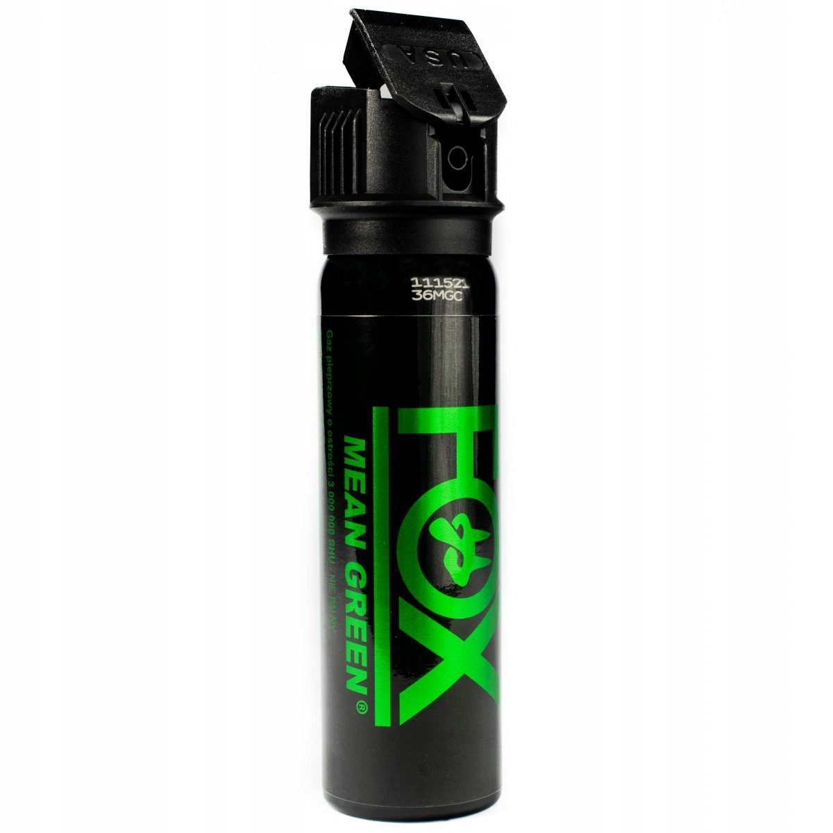 Діяльна речовина в лабораторіях Fox означає зелений перцевий перець - 6% розчину OC - алкалоїдна капсаїцин 3 000 000 SHU . Підрозділ SHU визначає кількість капсаїцину, тобто речовину, що відповідає за відчуття фокусування в їжі. різкість газу Fox Labs середня зелена майже така ж, як у перцю x - найгостріший перець у світі зі вмістом капсаїцину 3,18 мільйонів SHU. Через високу ефективність капсаїцину цей агент роками використовувався для виробництва поліцейського перцю. Завдяки Fox Labs ми можемо юридично використовувати той самий газ, який використовує американська поліція.