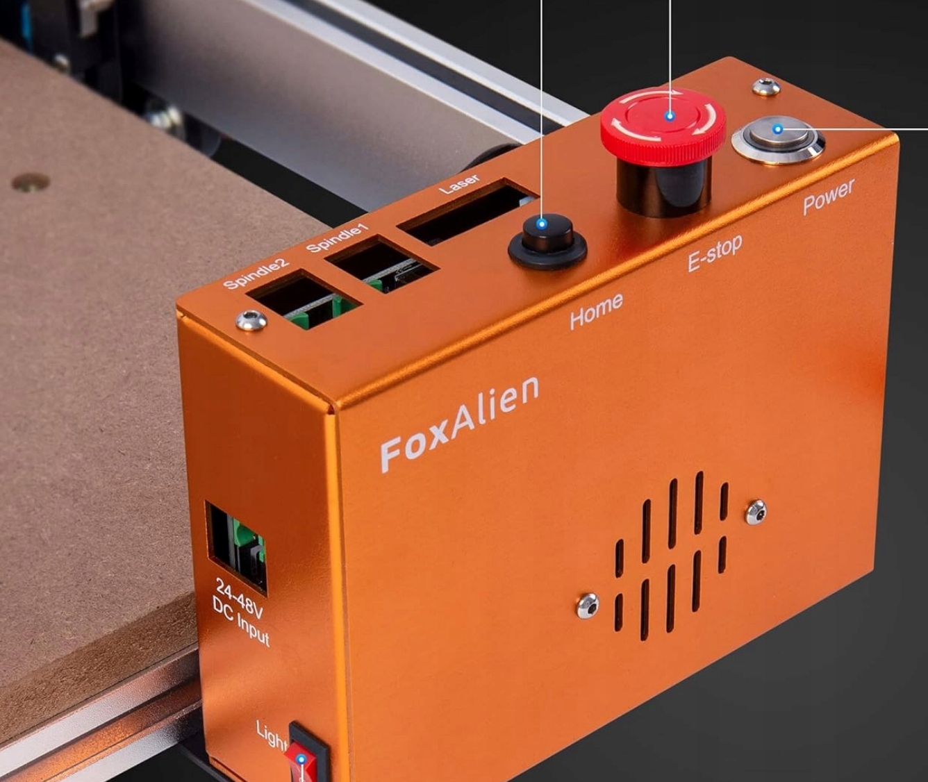 Поліпшення відповідності: Master Pro містить 2 шпиндельні затискачі: 52 мм і 65 мм. Затискач 52 мм може містити шпиндель 60 Вт, шпиндель 300 Вт та модулі Foxalien 20 Вт/40 Вт. Затискач 65 мм призначений для не стандартного оновлення, таких як 65 -мм маршрутизатор, шпиндель 1,5 кВт тощо. Він також підтримує шпиндельний затискач 69 мм, його слід купувати окремо.