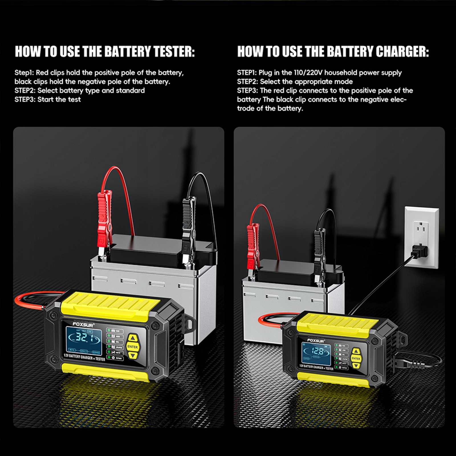 Foxsur 12V 6-амперний акумулятор і тестер для мотоцикла Автомобіль 04