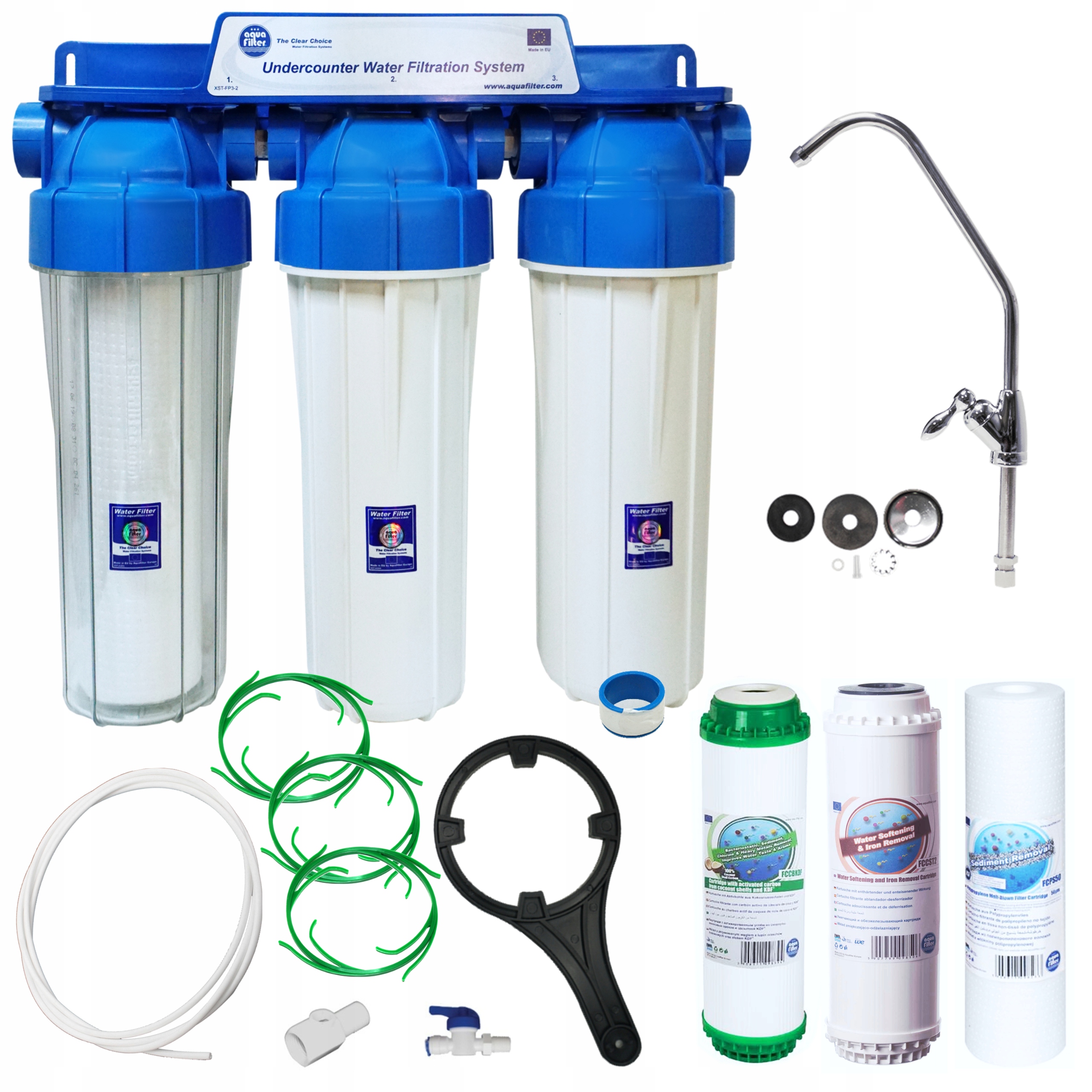 До складу системи входить картридж FCPS5, який видаляє з води механічні домішки, такі як пісок, мул, суспензії розміром не менше 5 мкм, FCCST2, що знижує концентрацію заліза та зменшує жорсткість води, та вугільну вставку FCCBKDF, яка видаляє хлор, пестициди, органічні речовини, знижує концентрацію важких металів, покращує смак і запах води, а також має бактеріостатичні властивості.