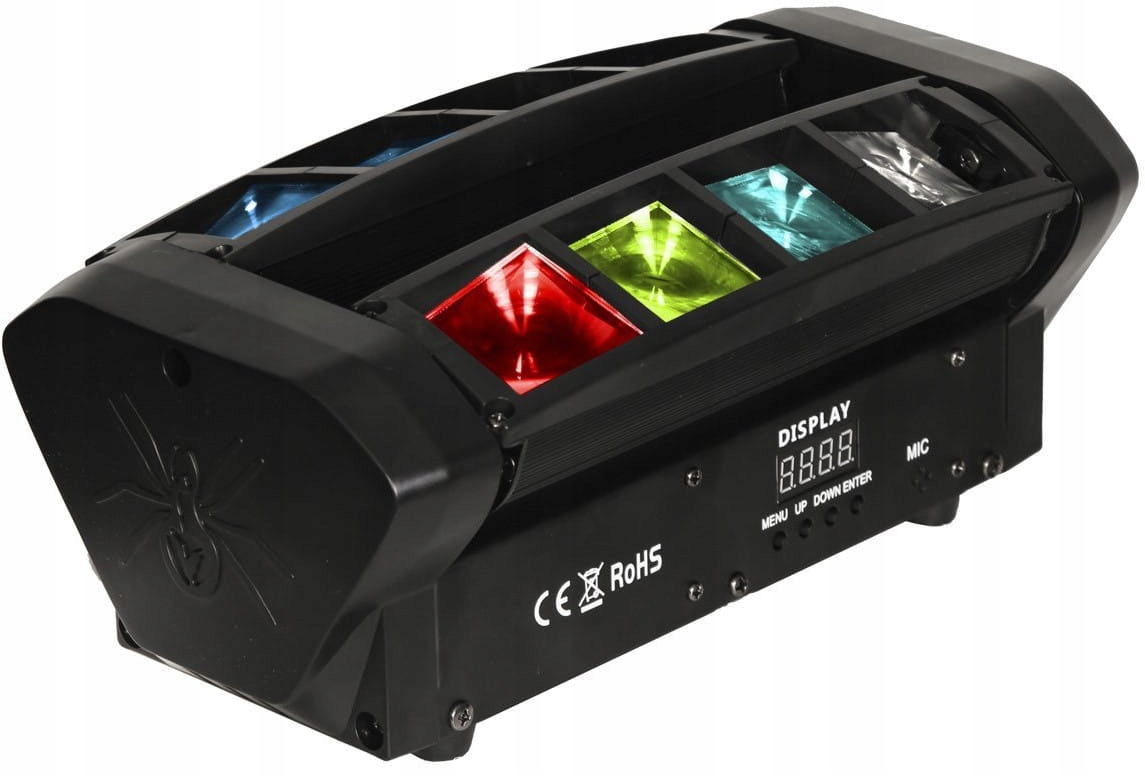 Мініатюрна версія ефекту Partyscope. Вісім незалежних джерел світла, встановлених на двох рухомих кронштейнах пристрою, дозволяють легко заповнювати простір рухомими світловими променями. Кожне плече має набір одноколірних діодів R + G + B + W, а вбудовані в пристрій автоматичні програми дозволяють легко швидко досягати цікавих ефектів. Використовуючи сигнал DMX, ви можете керувати всіма параметрами пристрою безпосередньо через контролер.