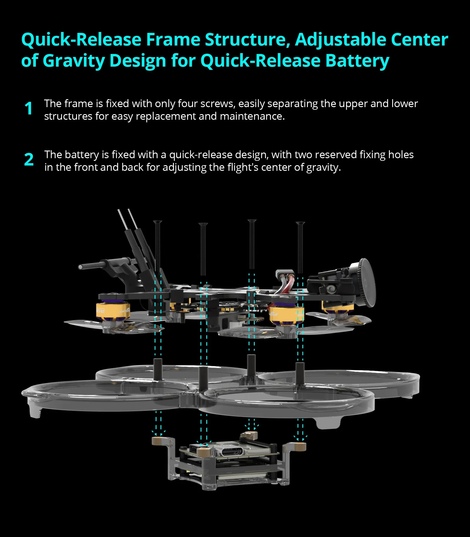 - ✅ перевернутий гвинтовий привід для стабільного польоту та довшої сили