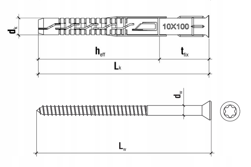 Technical parameters h1> - Diameter of the dowel [DK]: 10 mm