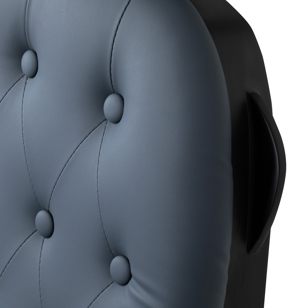Стабільна базова конструкція з елементами в відтінках чорного кольору забезпечує високий комфорт використання. Наповнення постійною, стійкою до деформаційної піни та оббивки, виготовленої з приємної до сенсорної синтетичної шкіри , забезпечують довговічність меблів та її комфортного використання протягом тривалого часу. Вони також роблять обладнання стійким до вологи, довговічним та простим у чищенні . Покриття в відтінках графіту разом з оригінальними квілінгами та декоративними кнопками дає йому спеціальний символ . Дизайнерські декоративні елементи, натхненні мотоциклами, посилаючись на старовинний стиль , ідеально відповідають атмосфері перукарських салонів, створюючи їх дивовижну атмосферу.