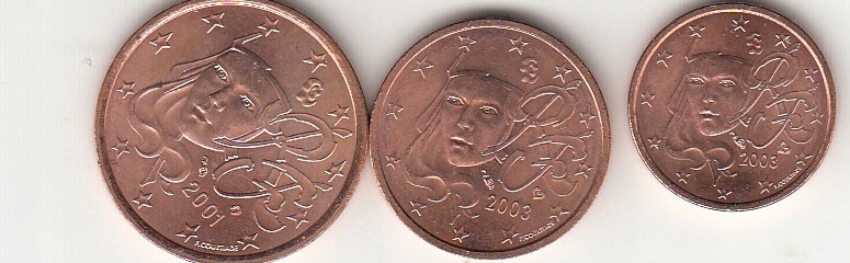 Франція 2001,2003 - 5 центів + 2 центи + 1 цент 2 євро - КІПР 2008 центів з рулону монети