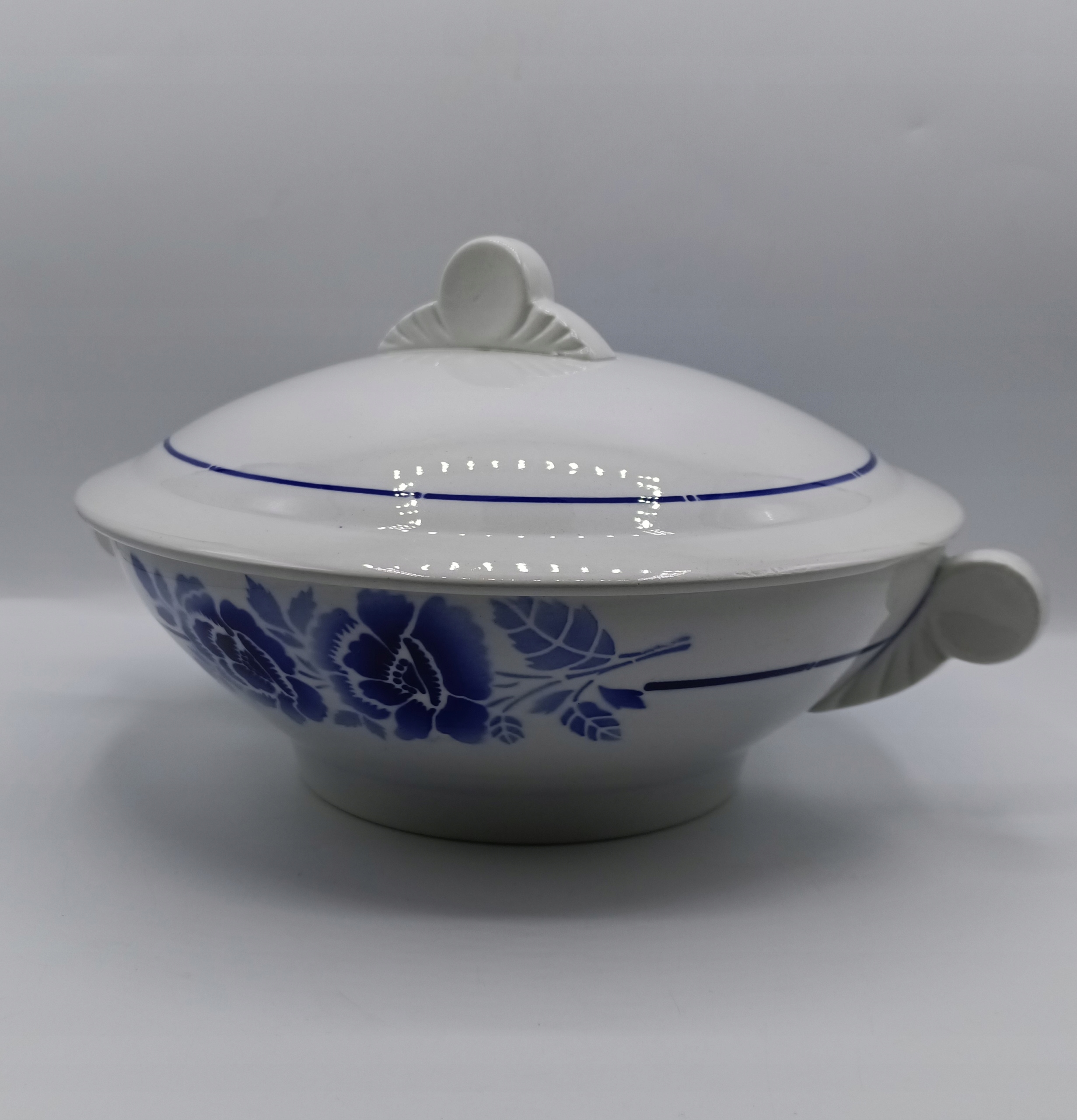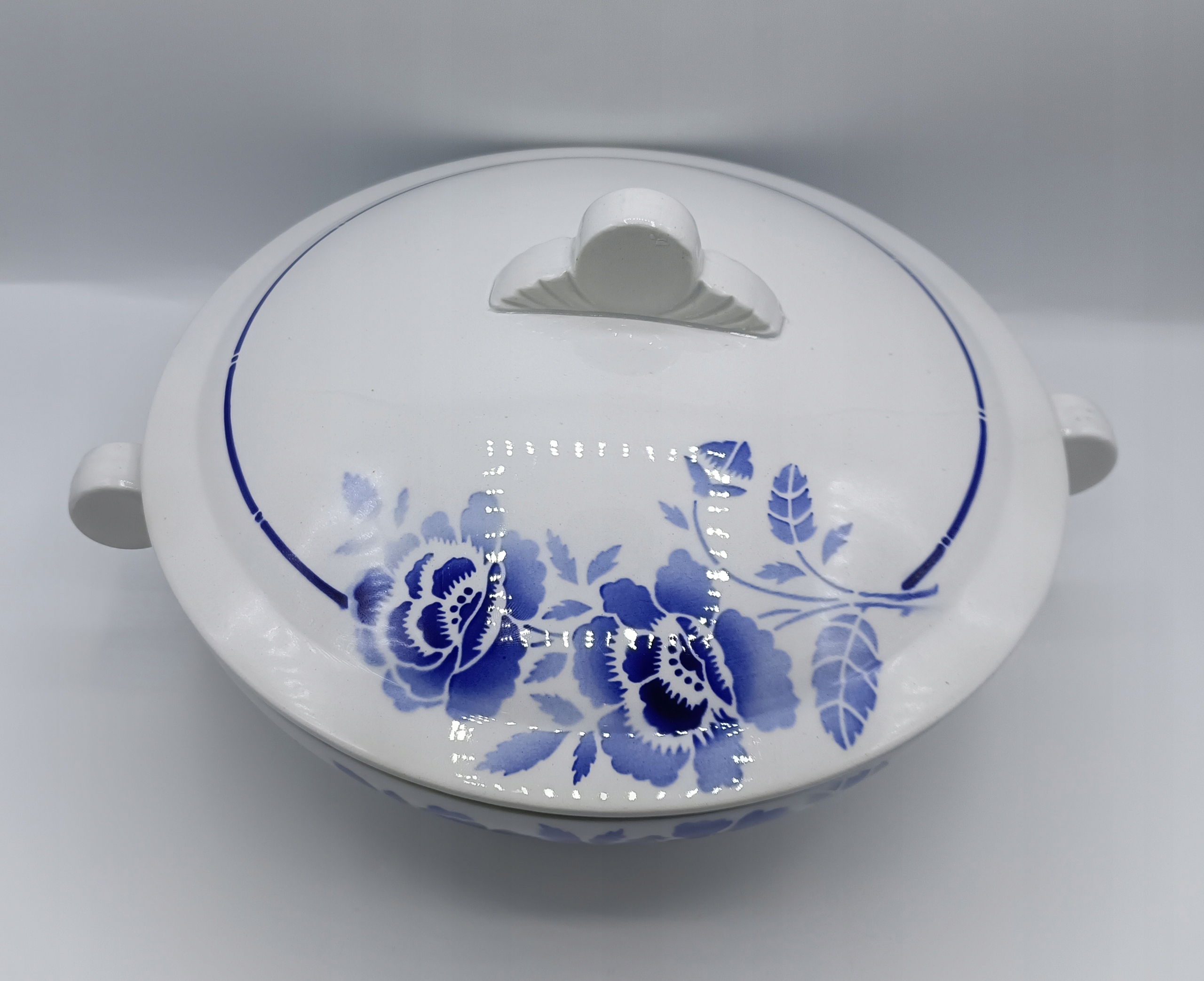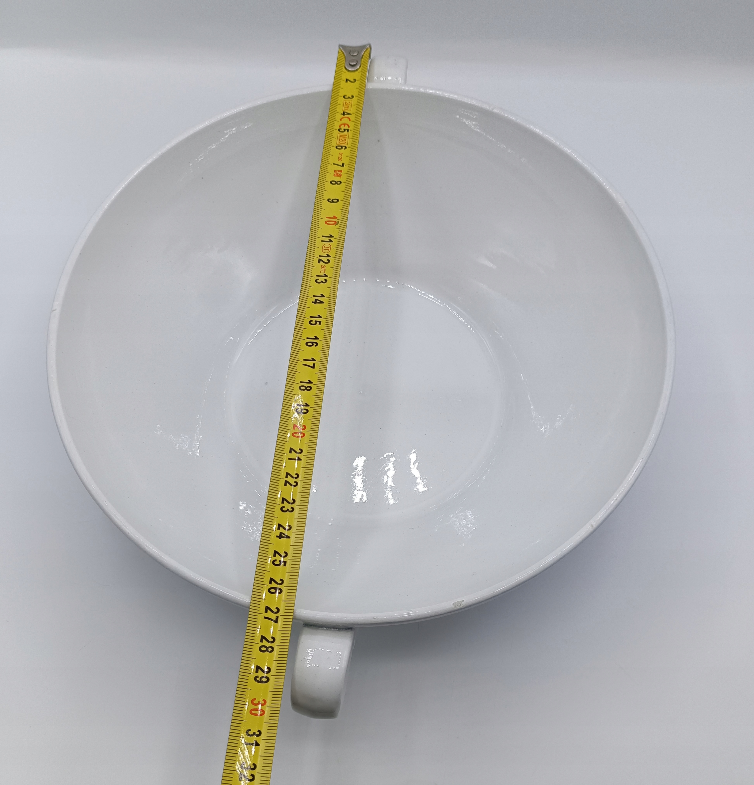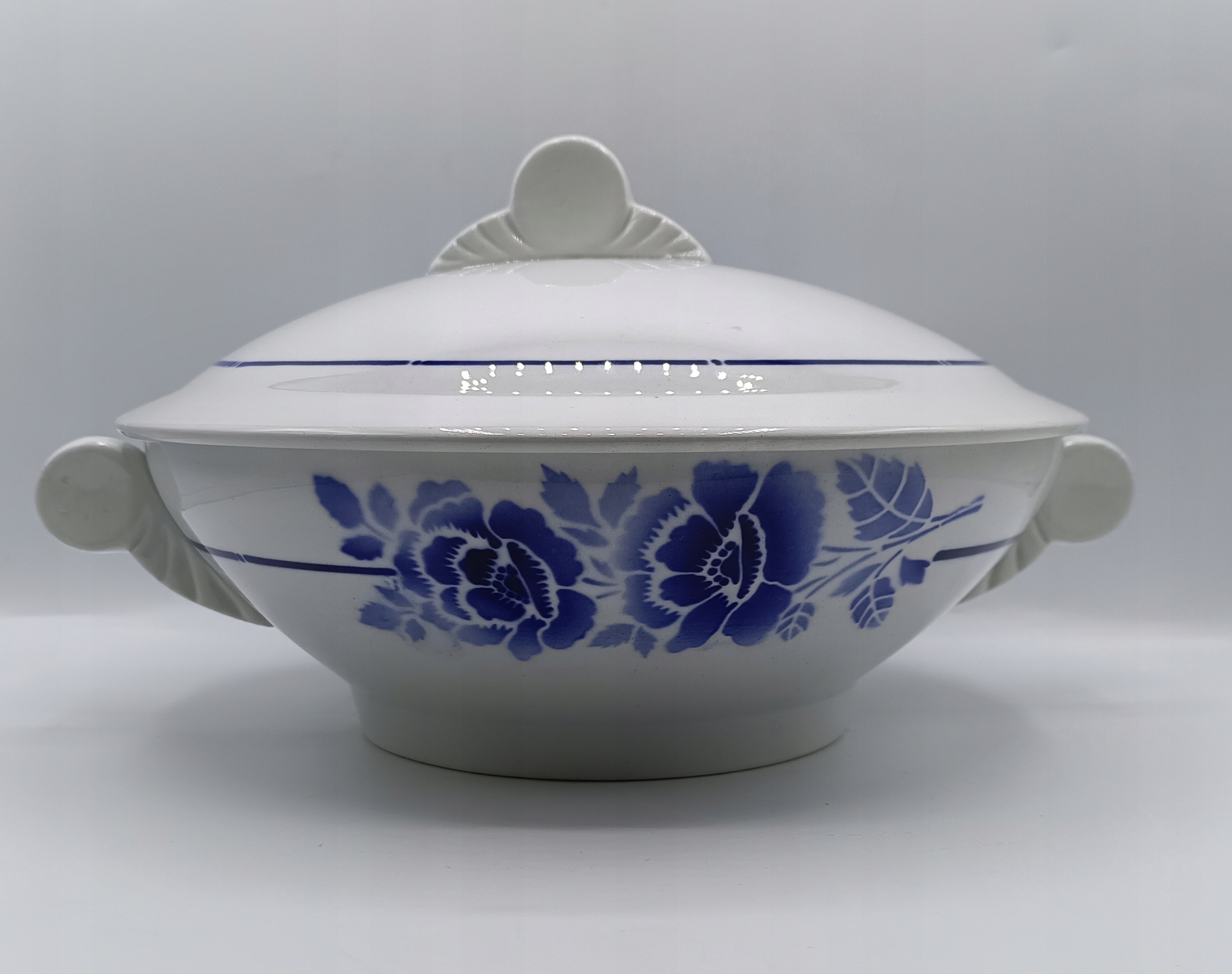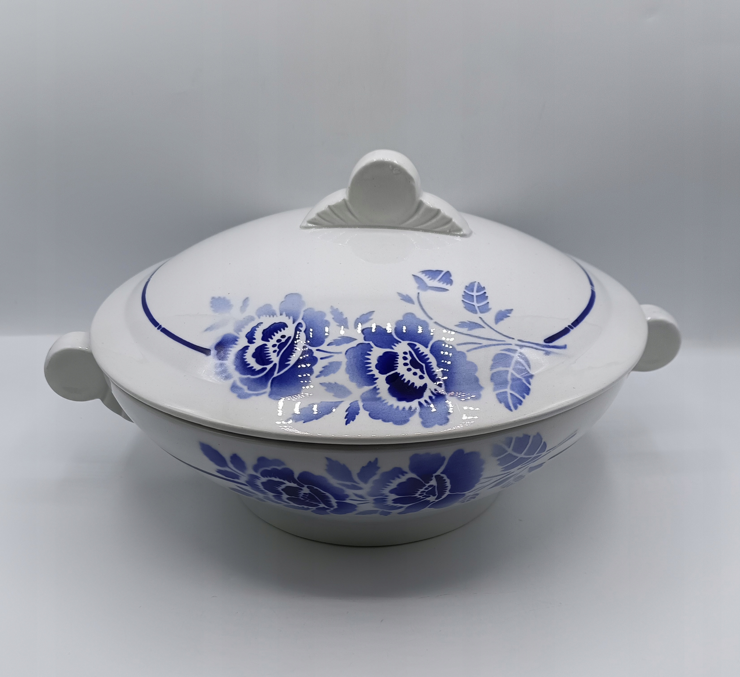 Супниця з французького старовинного порцеляни з блакитним трансферним відбитком. Виробляється у Франції St. Amand - 1950-ті роки. Максимальна місткість 2 л. Виготовлена з порцеляни, ширина заміряна з ручками 31 см, діаметр 26,5 см, висота 17 см, вага 1,7 кг. Дуже хороший стан, дуже добре збережений, колекторна чаша і, звичайно, придатний до використання. РЕКОМЕНДУЮ!