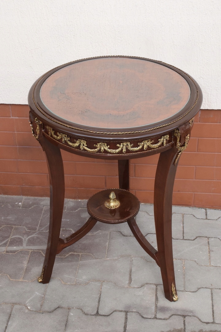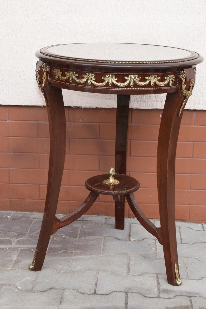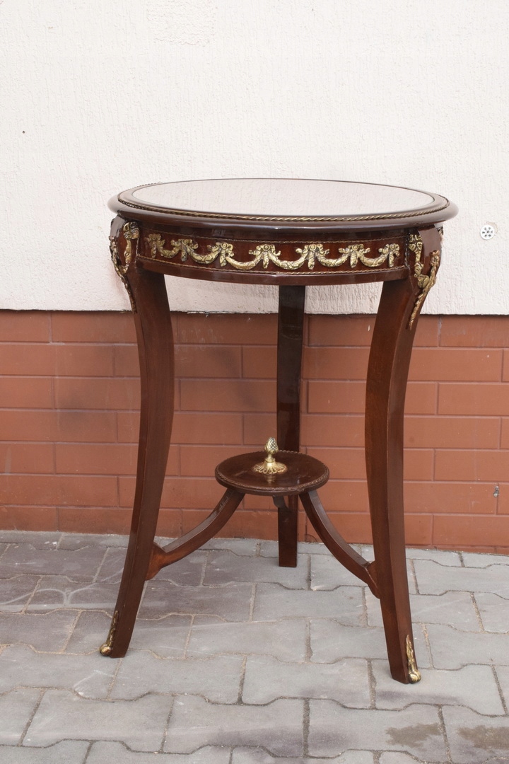 Francuski Stół - Drewno + Mosiądz - Inkrustowany - Okrągły - Stabilny