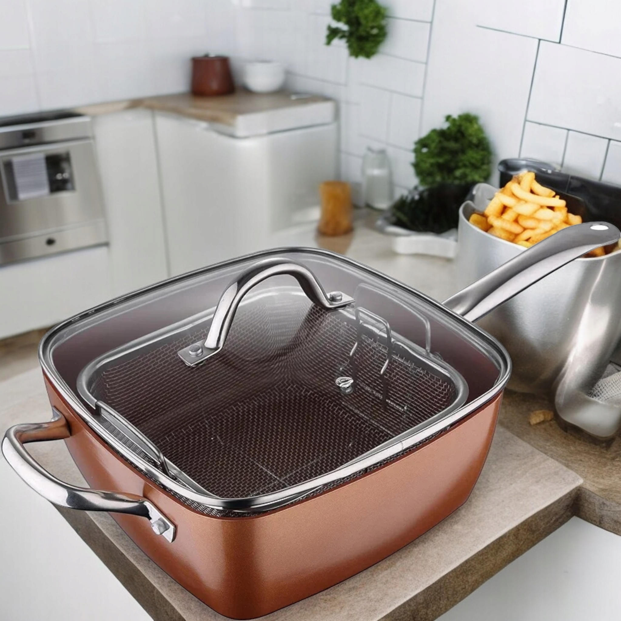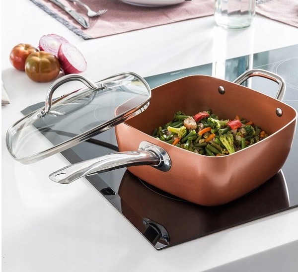 - У горщику є плоске дно , адаптоване для приготування їжі на електричній, індукції, керамічній та газі.