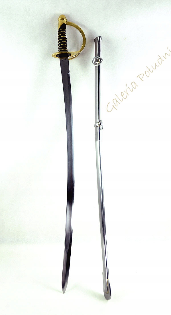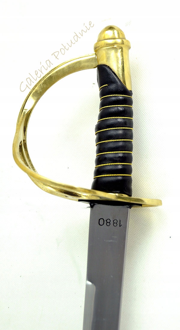 Репліка французької шаблі 1880 року, захована в срібних піхвах. Позолочену рукоятку шаблі обтягували шкірою, обтягнутою дротом. На піхвах є металеві тримачі для кріплення шнура. Поздовжнє симетричне тиснення на клинку. Kinga виготовлена зі сталі найвищої якості. На гладкому клинку шаблі можна вигравірувати будь-яку присвяту. Шабля — чудове задоволення для любителів холодної зброї.