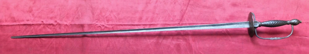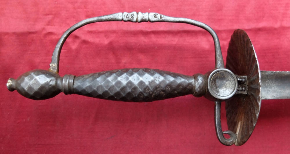 Екземпляр, який видно на фотографіях, дуже добре зберігся для свого віку. Лезо трикутне з увігнутими амфібіями. Він нешліфований, незаточений, має трохи відщеплене перо, видно, що в епоху. Делікатні прикраси на амфібіях клинка, літери E на поперечині, на поріжку клинка. W. Рукоять виготовлена зі сталі, на хрестовині нанесено маркування K. 2: 8 і 13 : 37. Рукоять не має люфту.