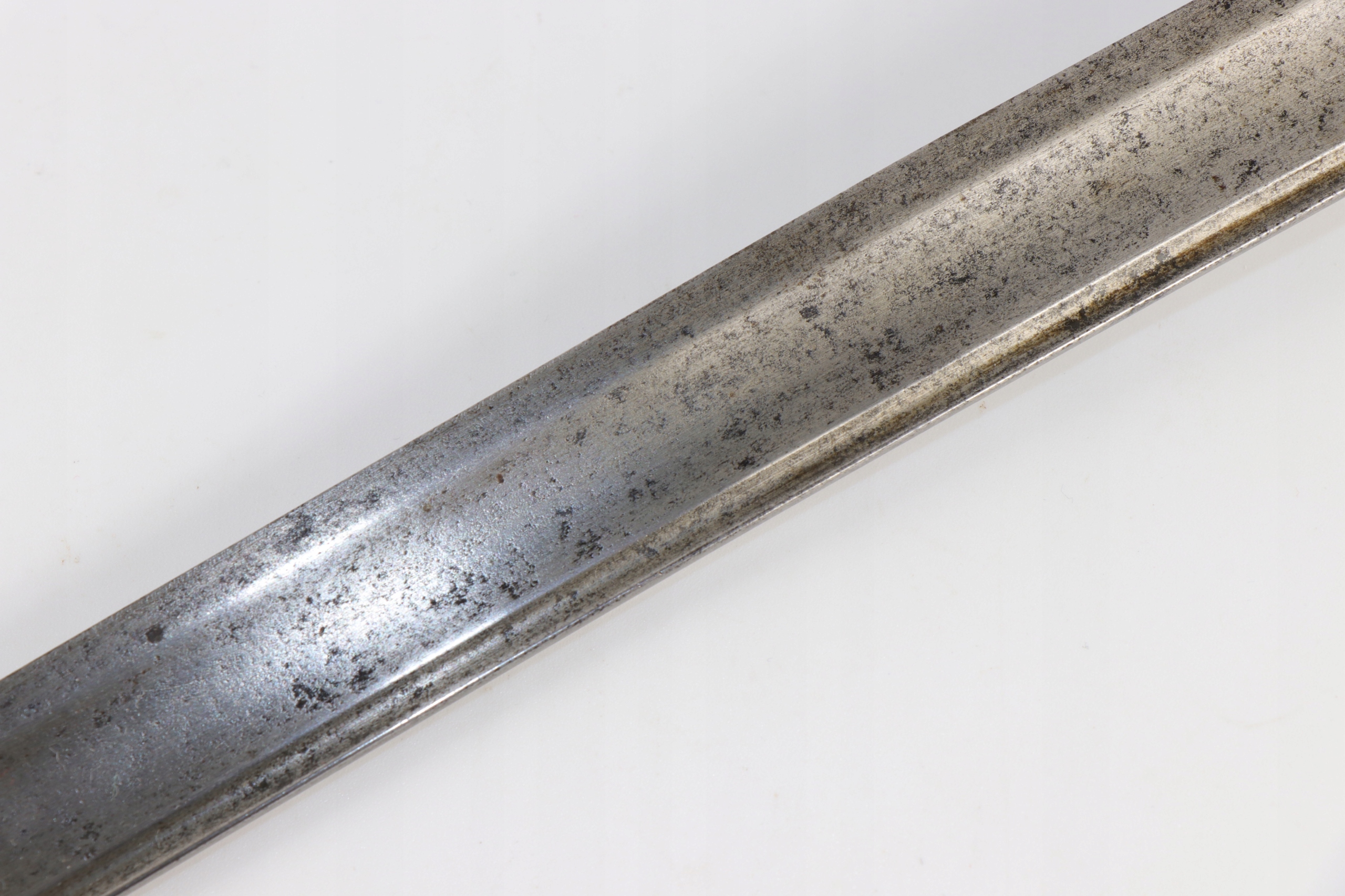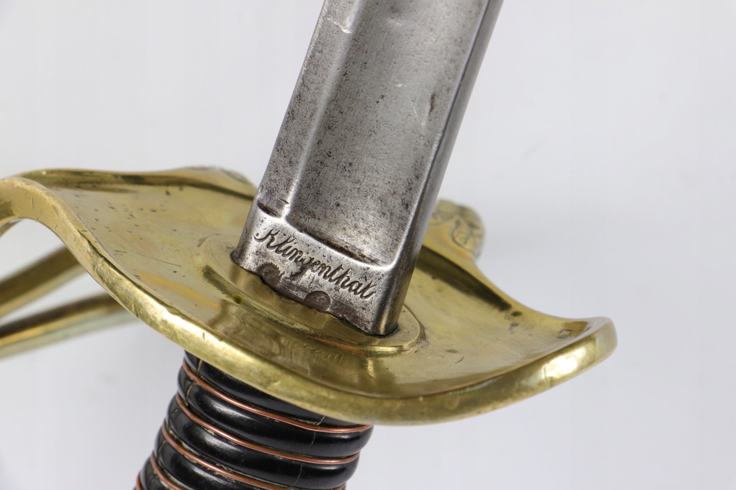Французька шабля офіцера легкої кавалерії (cavalerie légère) Coulaux ainé à Klingenthal. В основі леза є напис Klingenthal і дві приймальні точки.