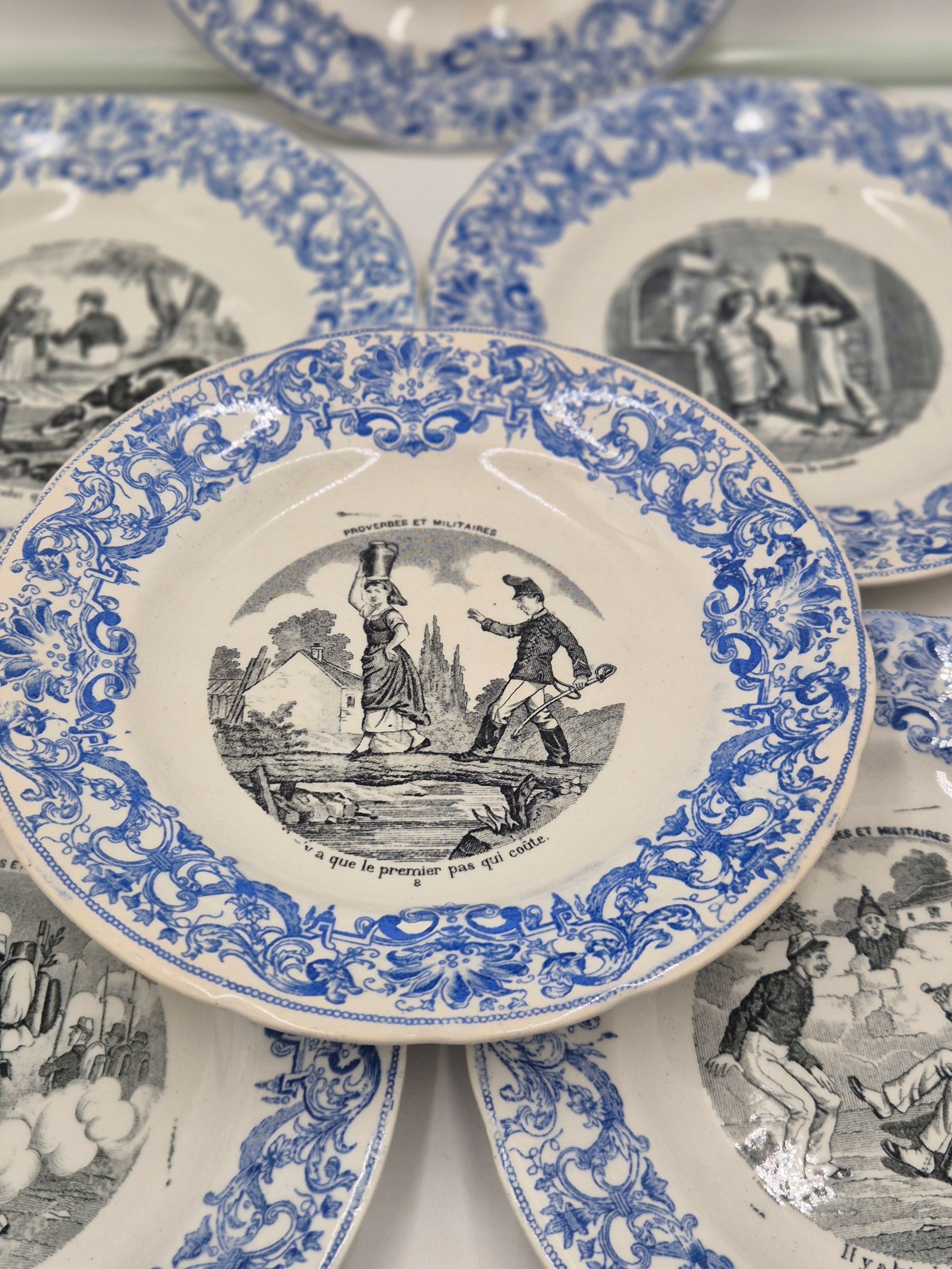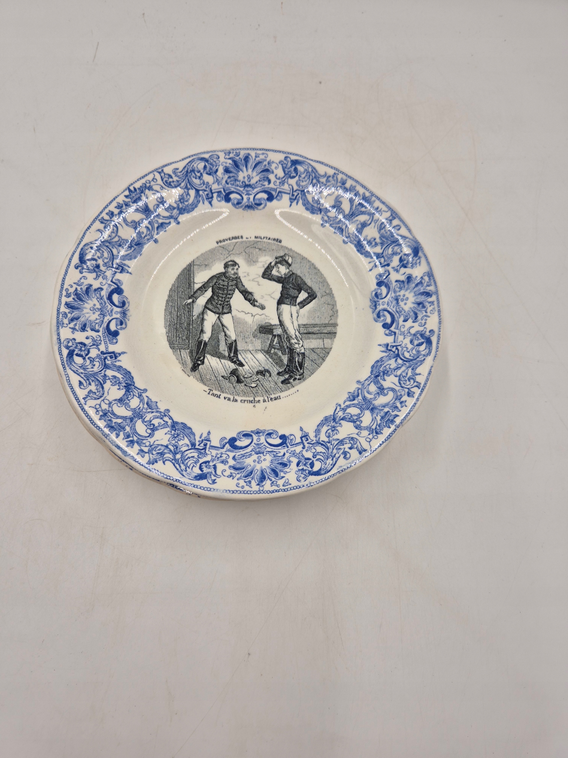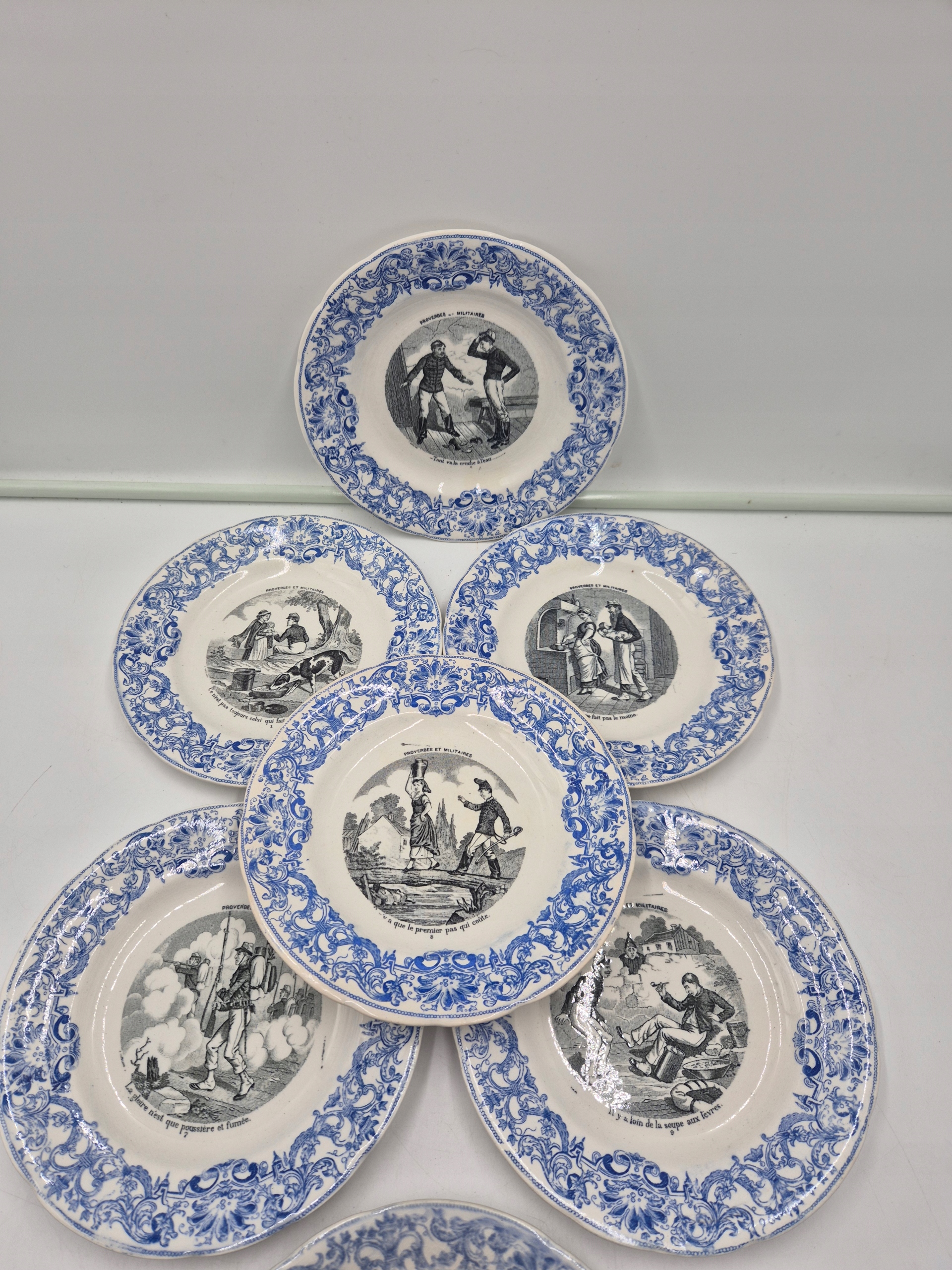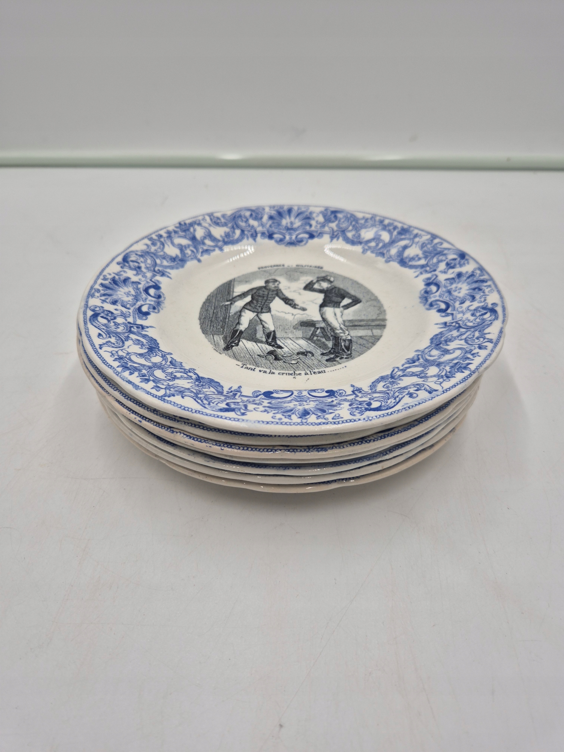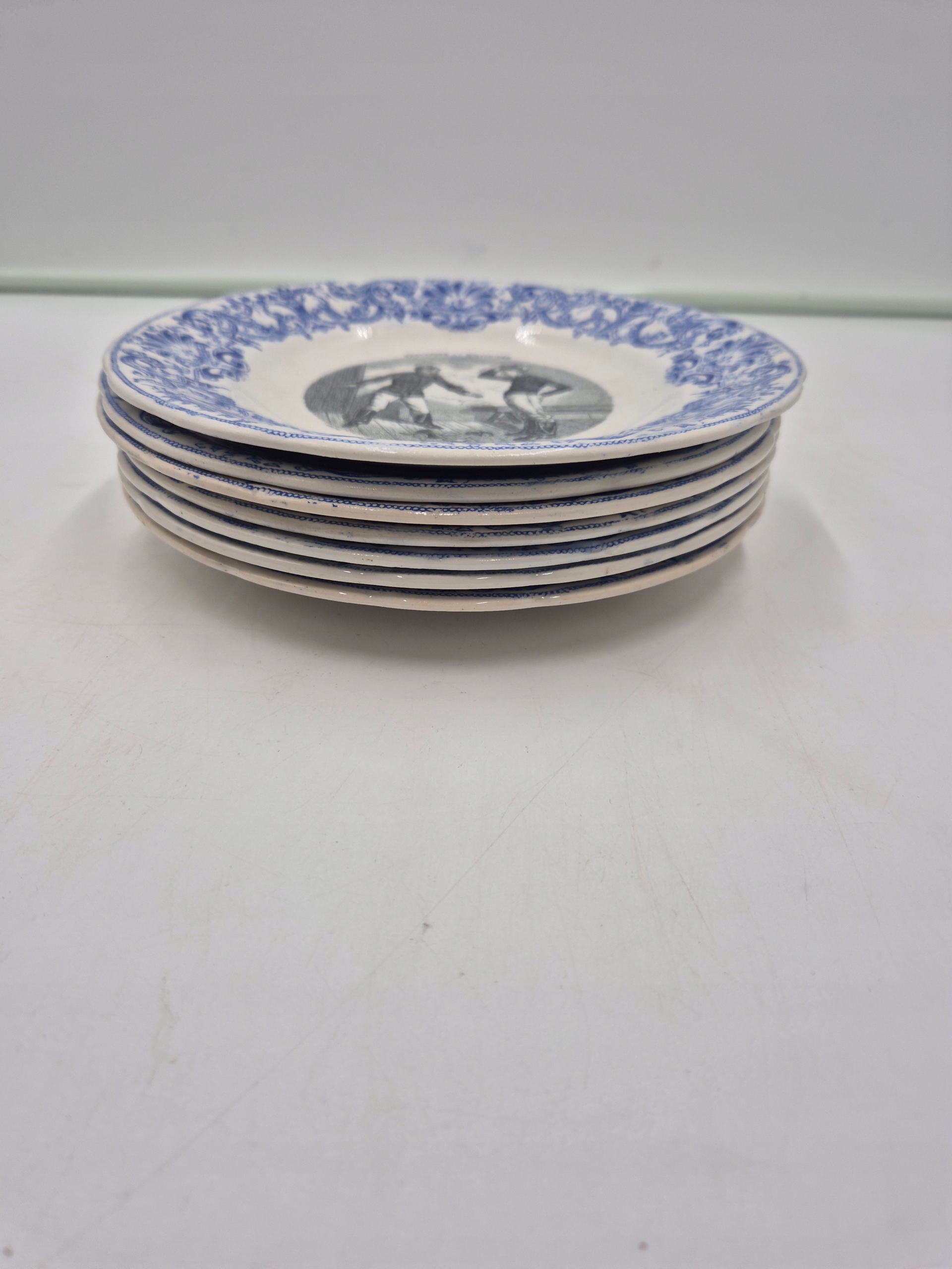 Предметом аукціону є набір з 7 красивих тарілок з французького фаянсу з красивим блакитним декором по краю.