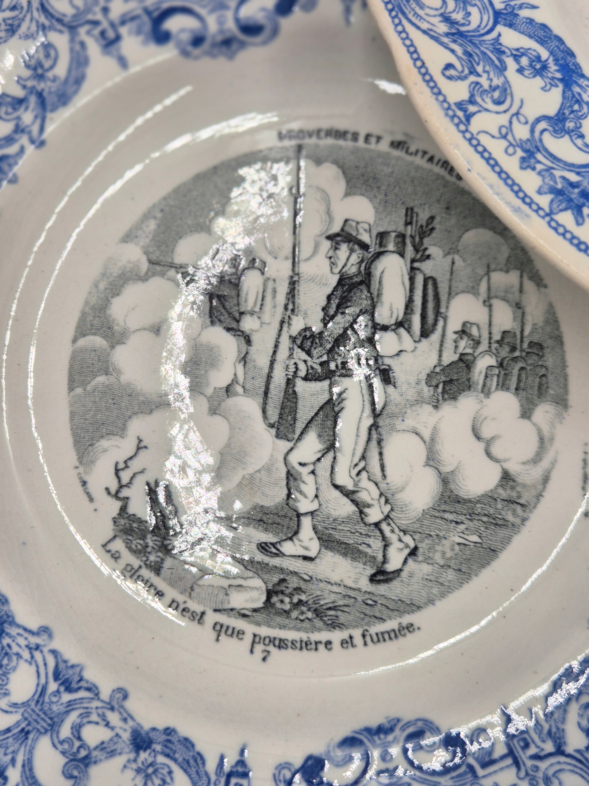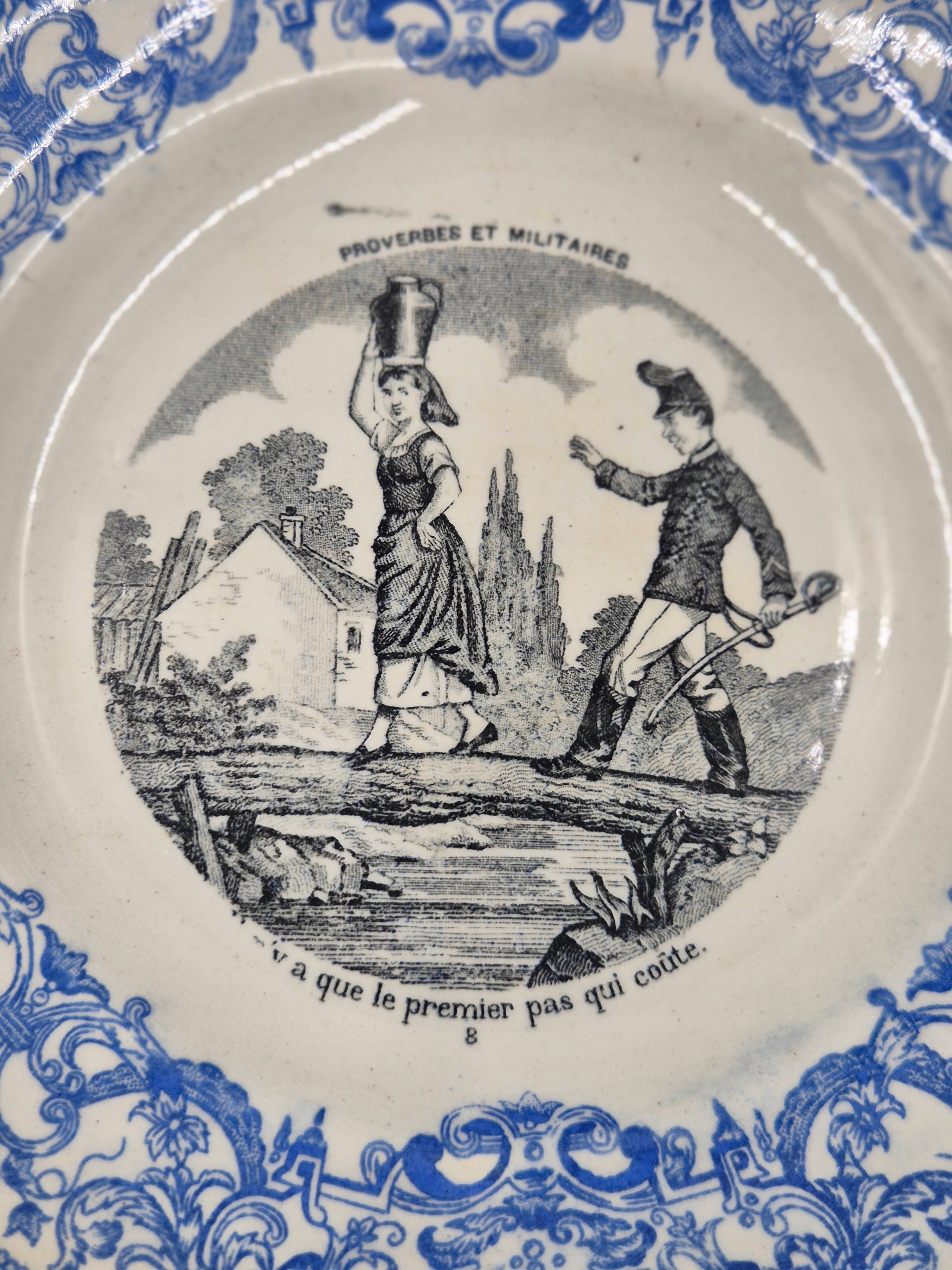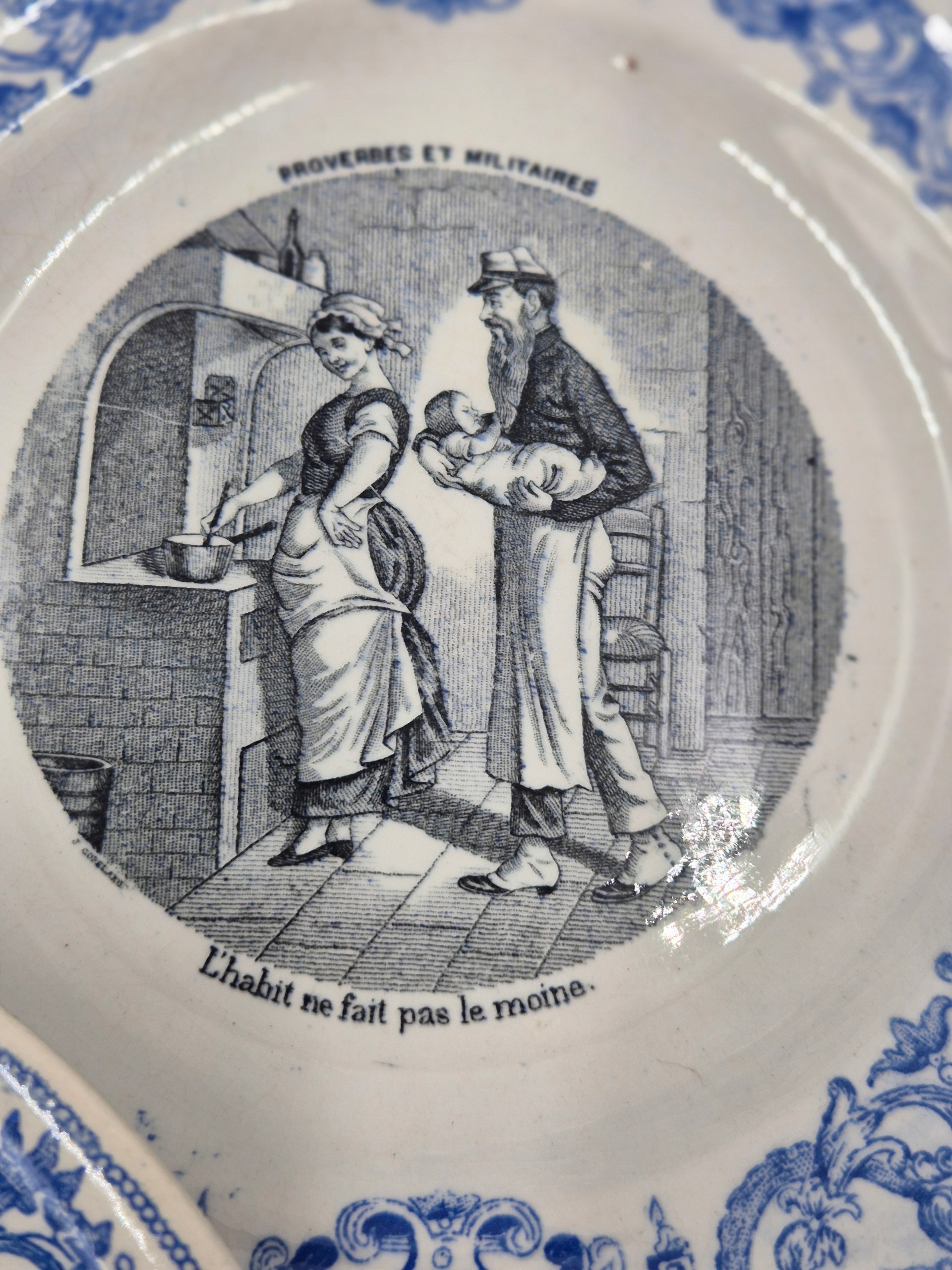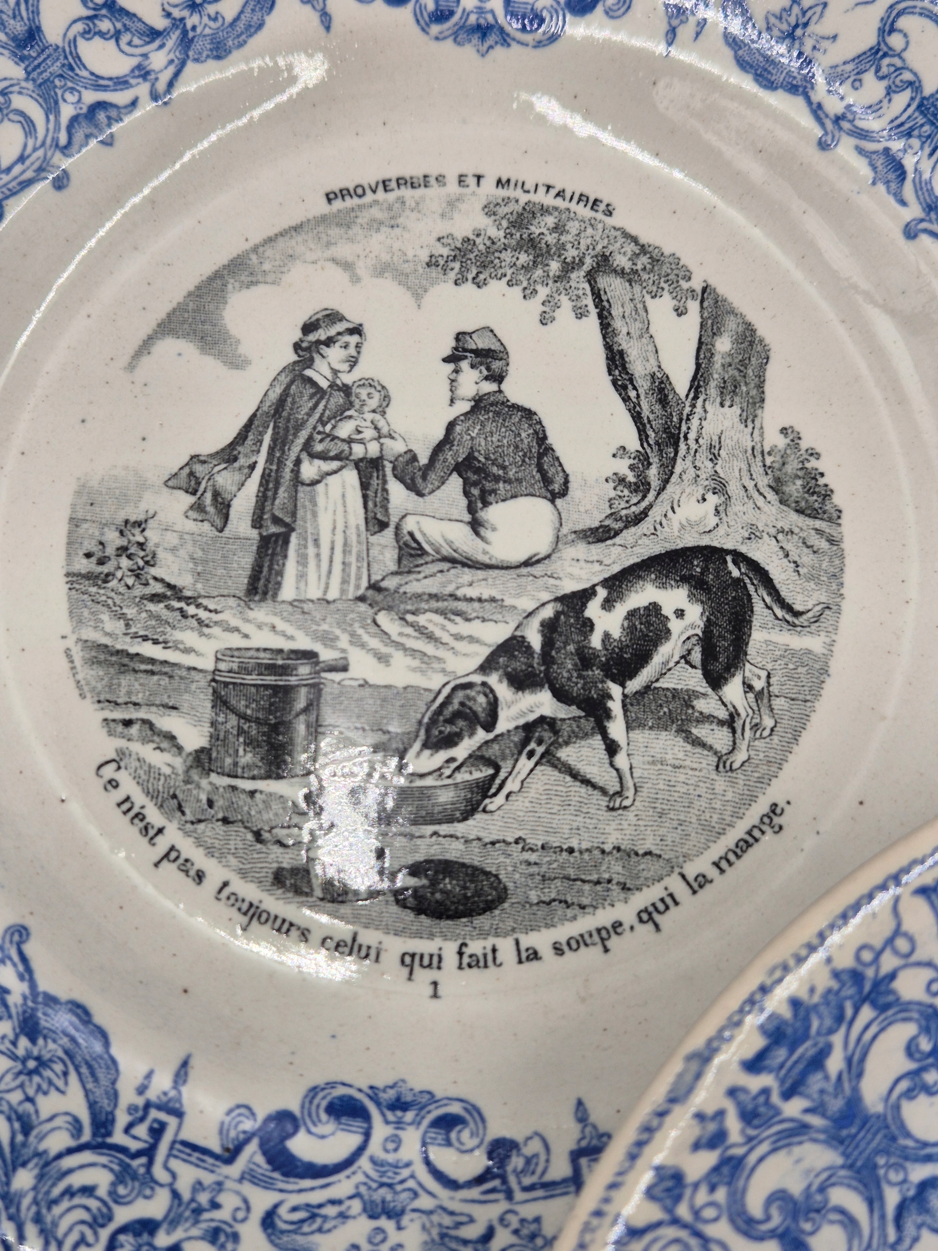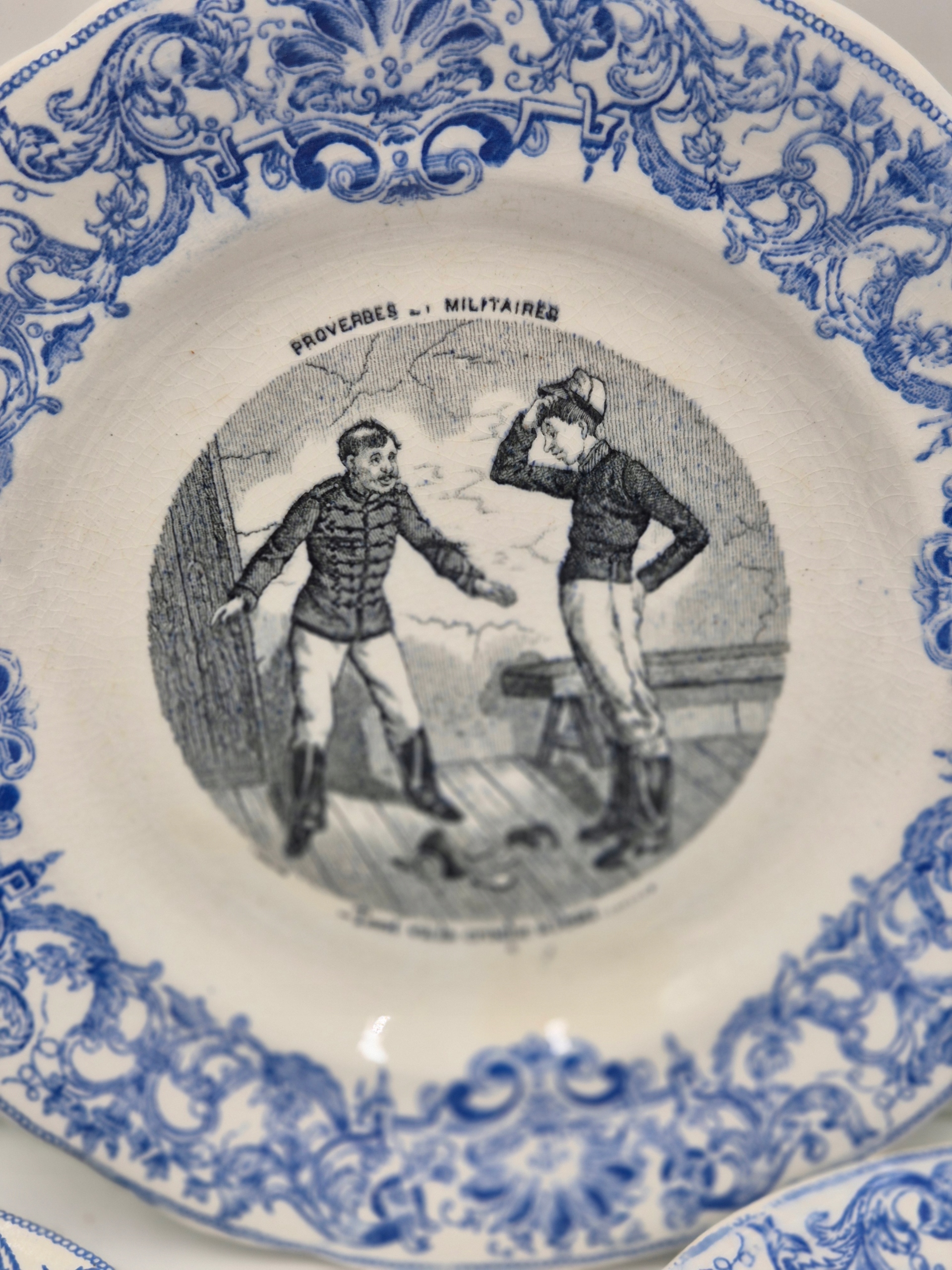 Предметом аукціону є набір з 7 красивих тарілок з французького фаянсу з красивим блакитним декором по краю.