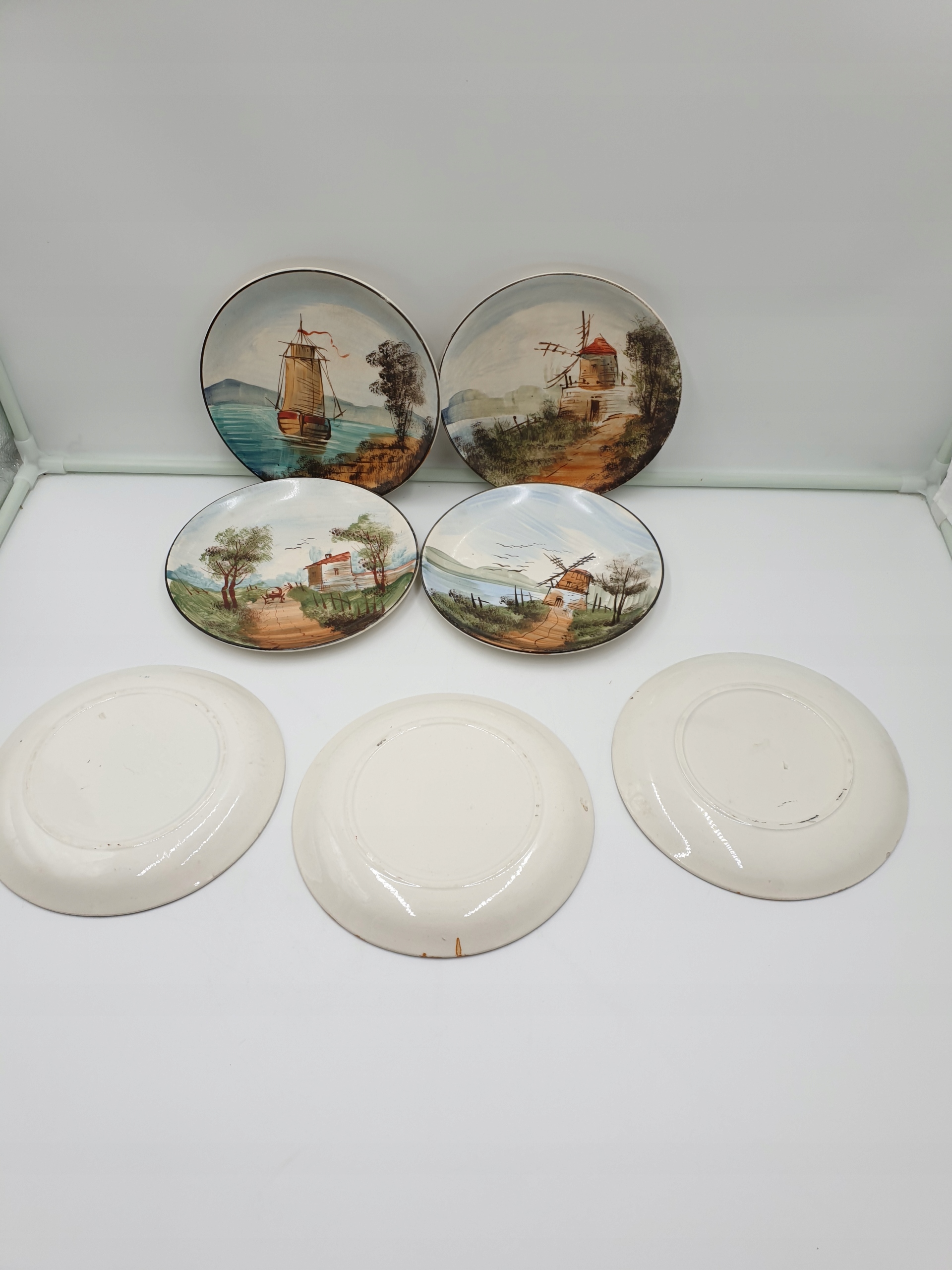 Французькі порцелянові тарілки, 7 штук, ручний розпис пейзажу