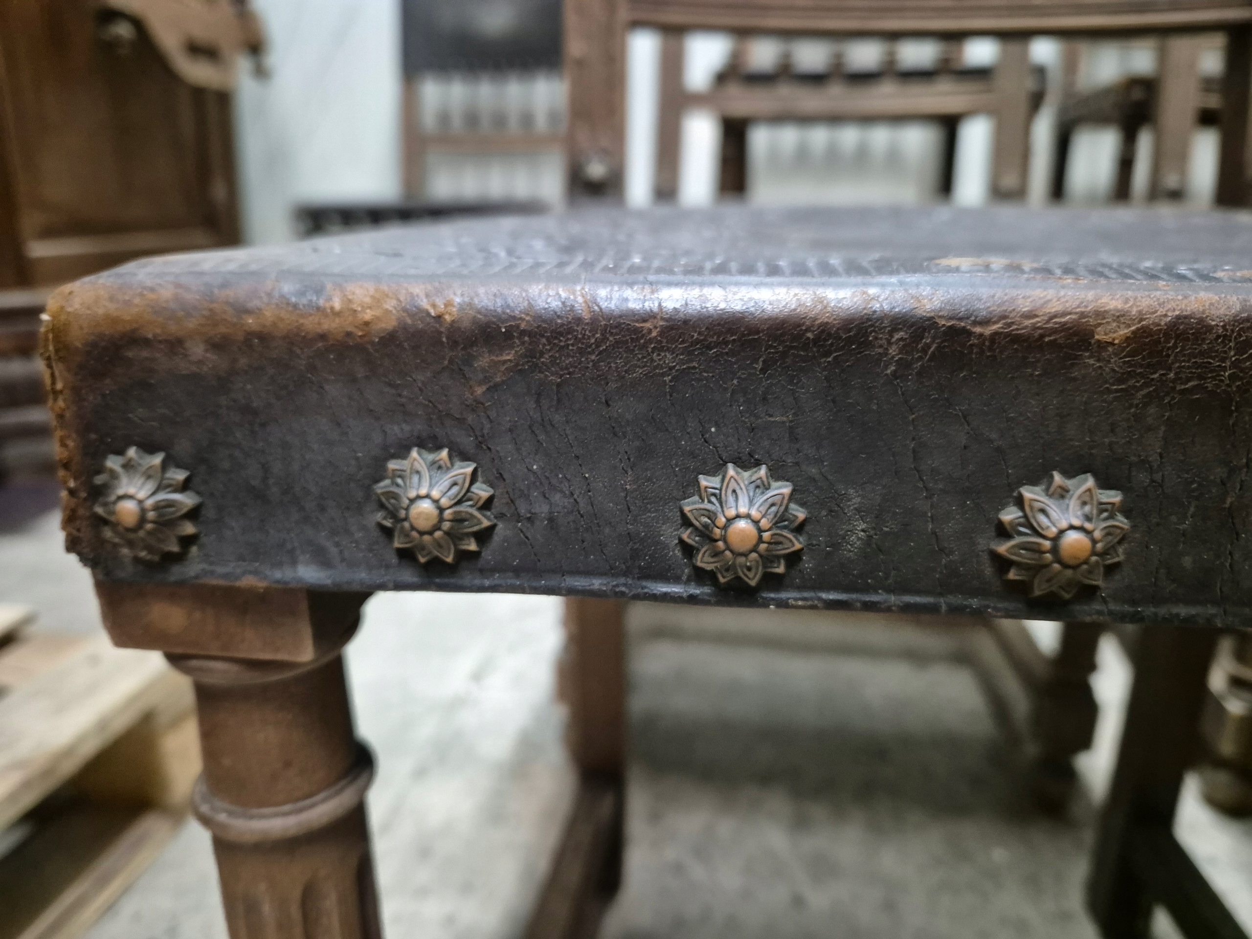 Предметом аукціону є красиві стільці, оббиті телячою шкірою, з декорованими ніжками, спинками, прикрашеними різьбленням з раковини святого. James.