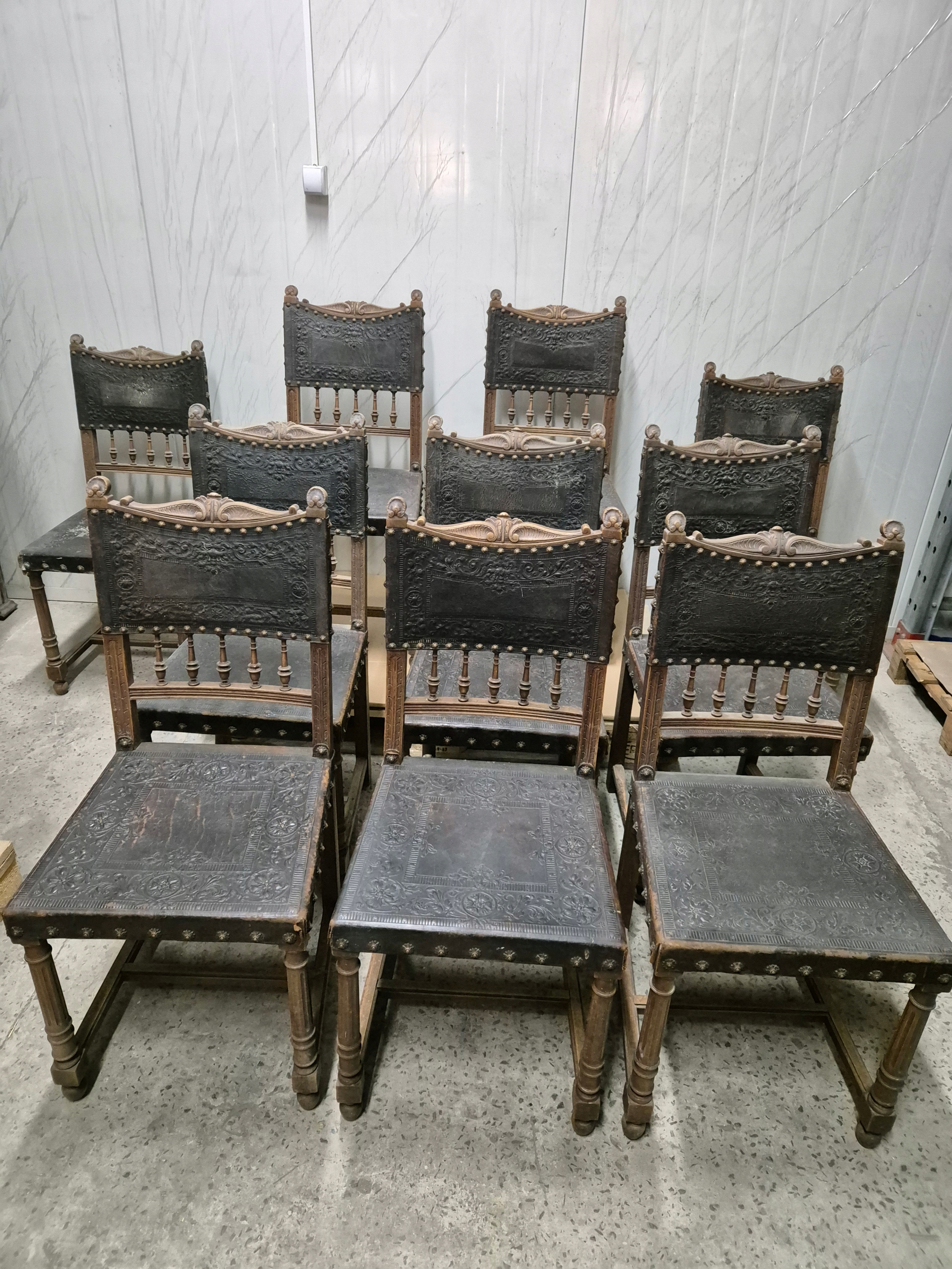 Французькі стільці з телячої шкіри 10 шт., антик