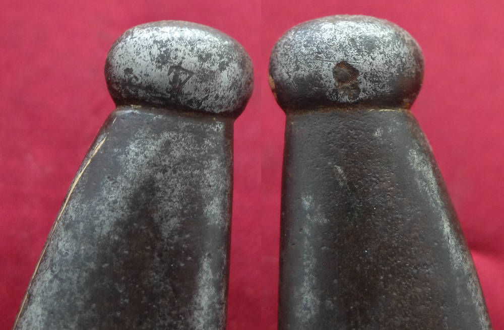 Примірник, який видно на фотографіях, добре зберігся. Лезо не точене, заточене. На поріжку клинка французьке клеймо, а з іншого боку голова лицаря - клеймо мануфактуриKirschbaum Solingen. На хрестовині також вибитий маленький підпис. Ручка виготовлена з латуні, працює байонетний замок. Чохол не має дірок і не м'ється. Напрямна справна, клинок добре лягає в піхви.