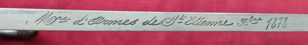 Копію можна побачити на фото, дуже гарно збережена. Лезо незаточене та незаточене. Французькі підписи вибиті на ладі леза. На звороті клинка напис, мануфактура Св. Etienne, рік виробництва 1878. На поперечині вибиті номер N 66582 і французькі позначки. Накладки на ручки дерев'яні, оригінальні. Багнетний замок працює.