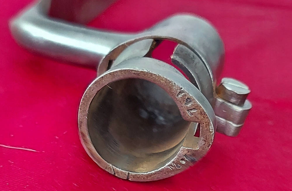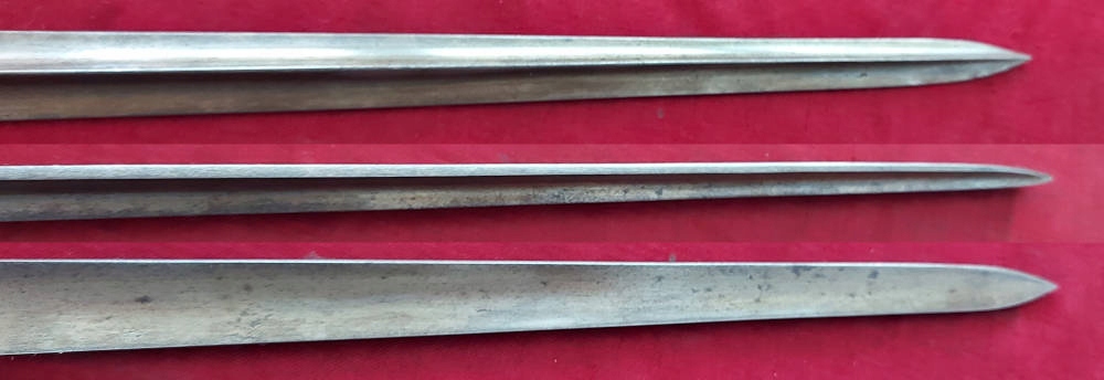 Копія, видно на фотографіях. Дуже добре збережено. Лезо, незручне, невідоме. Кільце на рукаві рухається. На порозі леза та плеча видимі підписи.